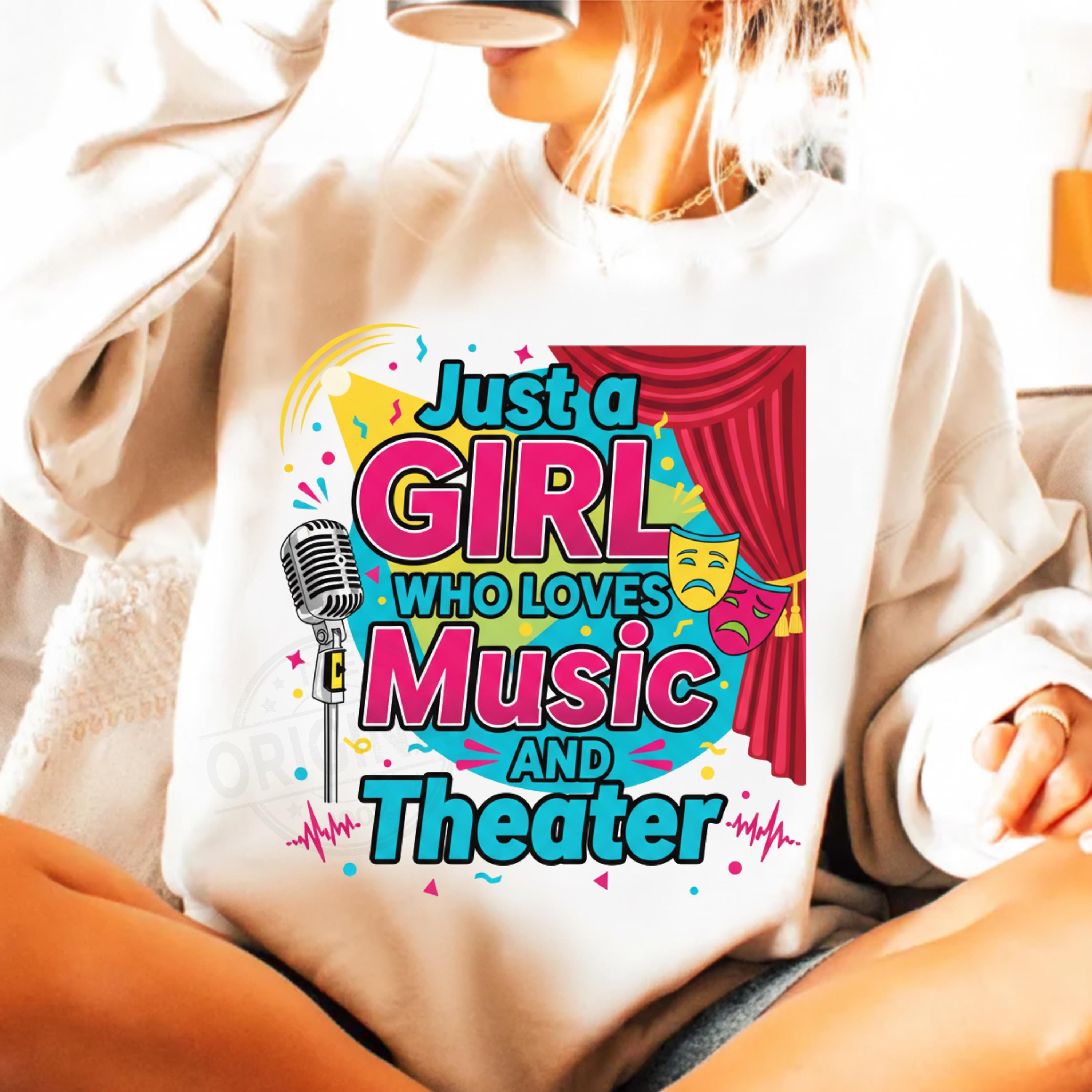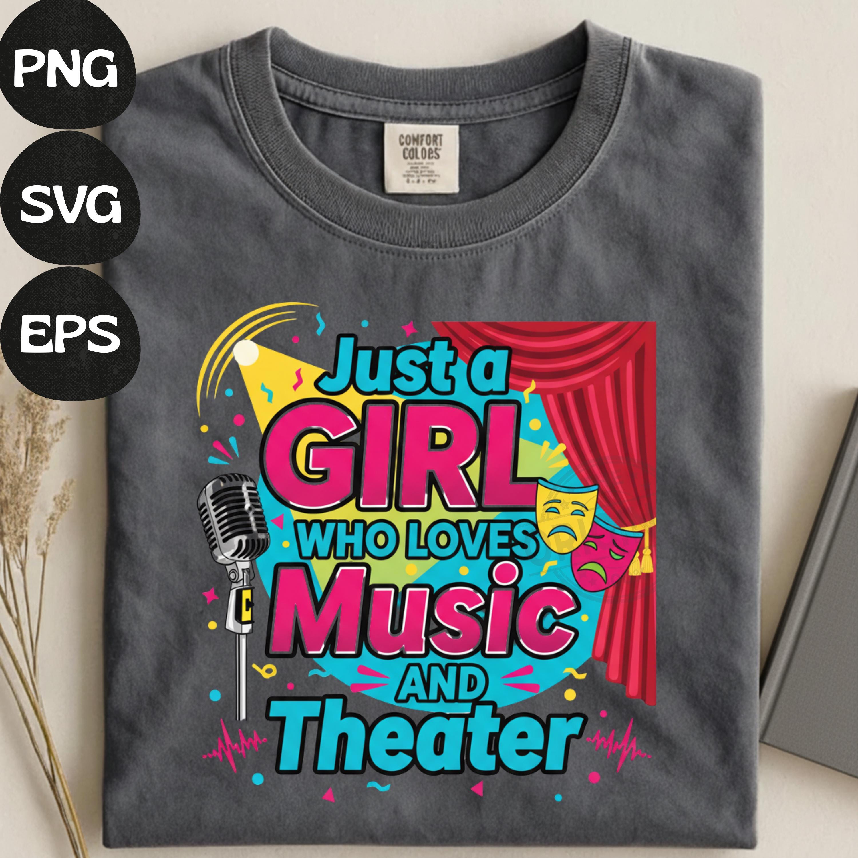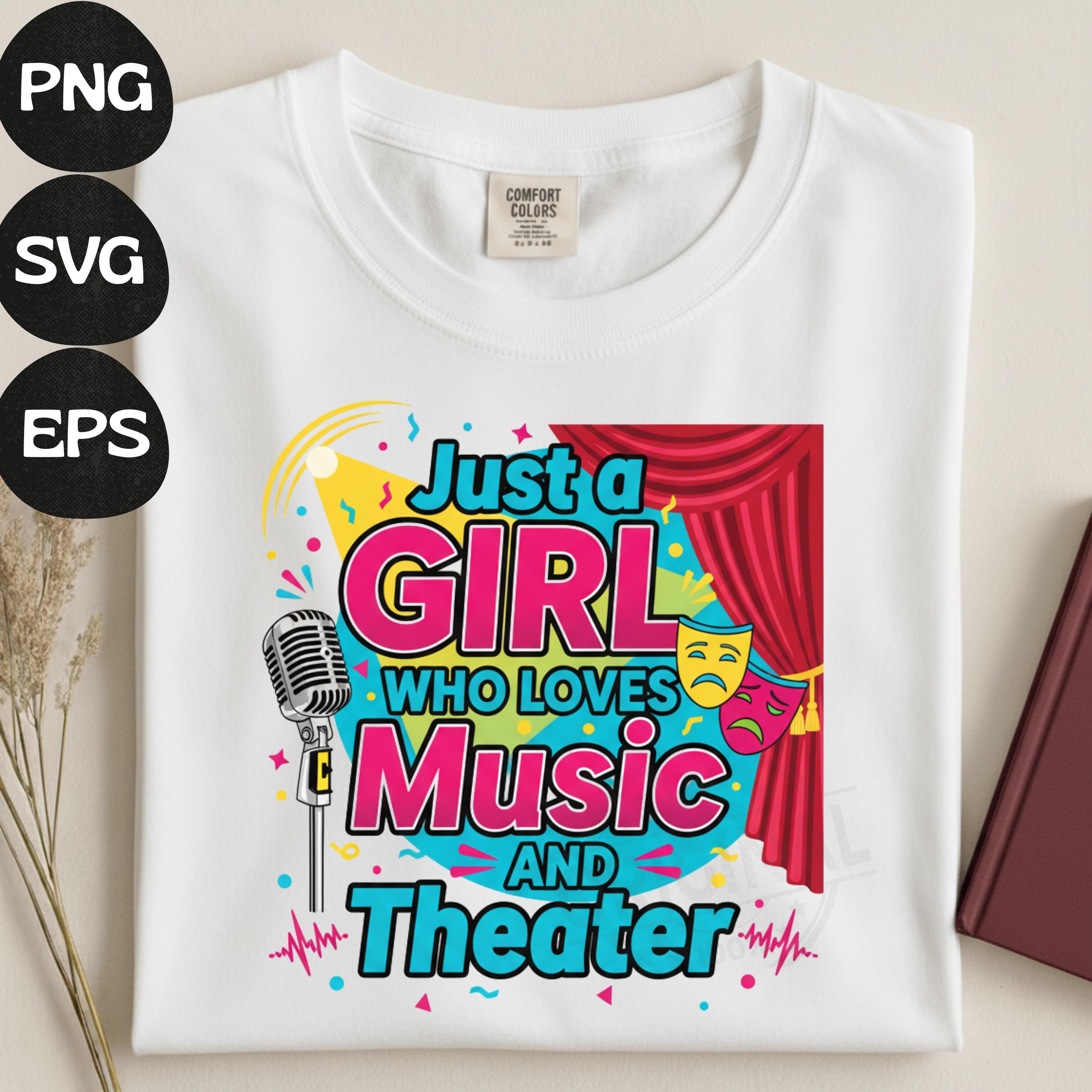 Show off your artistic passion with this Just a Girl Who Loves Music and Theater digital design — perfect for musical lovers, theater fans, drama students, performers, choir members, and creative girls who adore the stage. This stylish and expressive design works beautifully for shirts, mugs, posters, stickers, scrapbooking, and digital crafting projects.