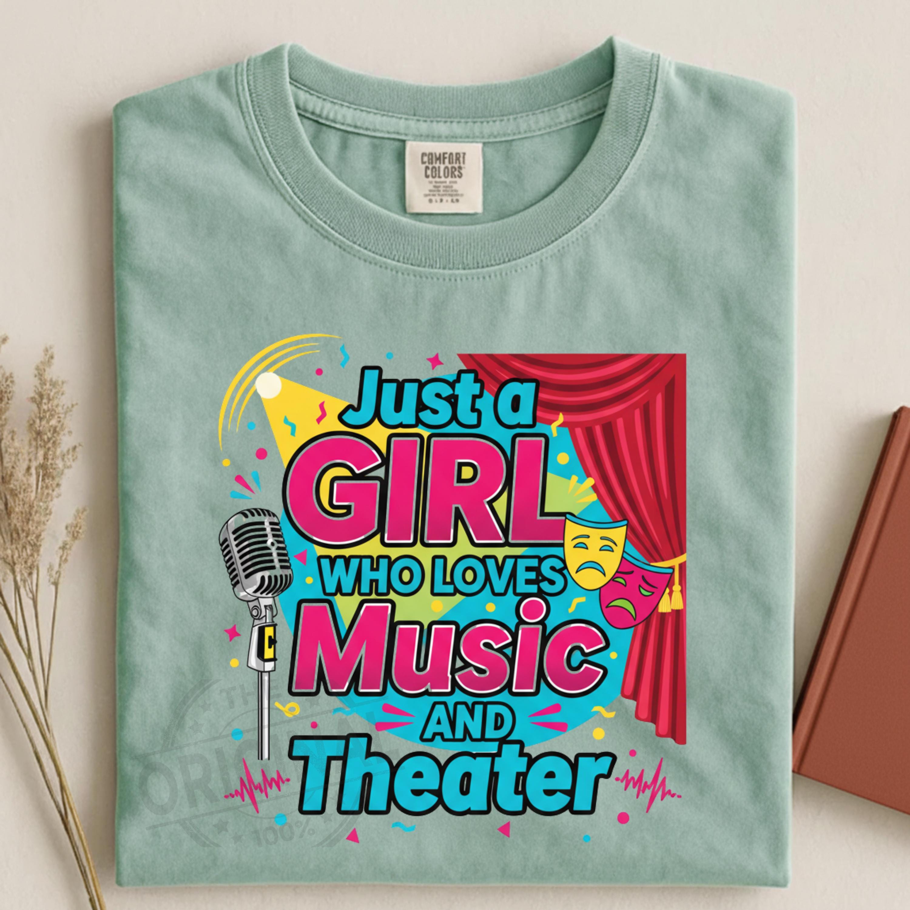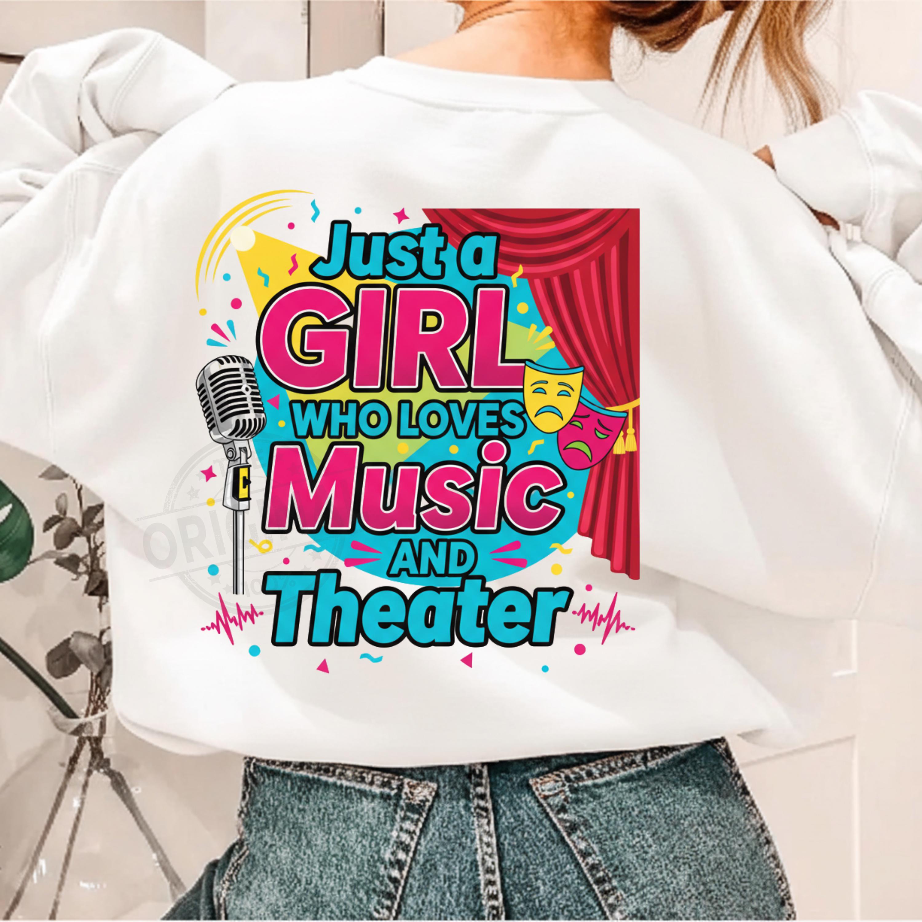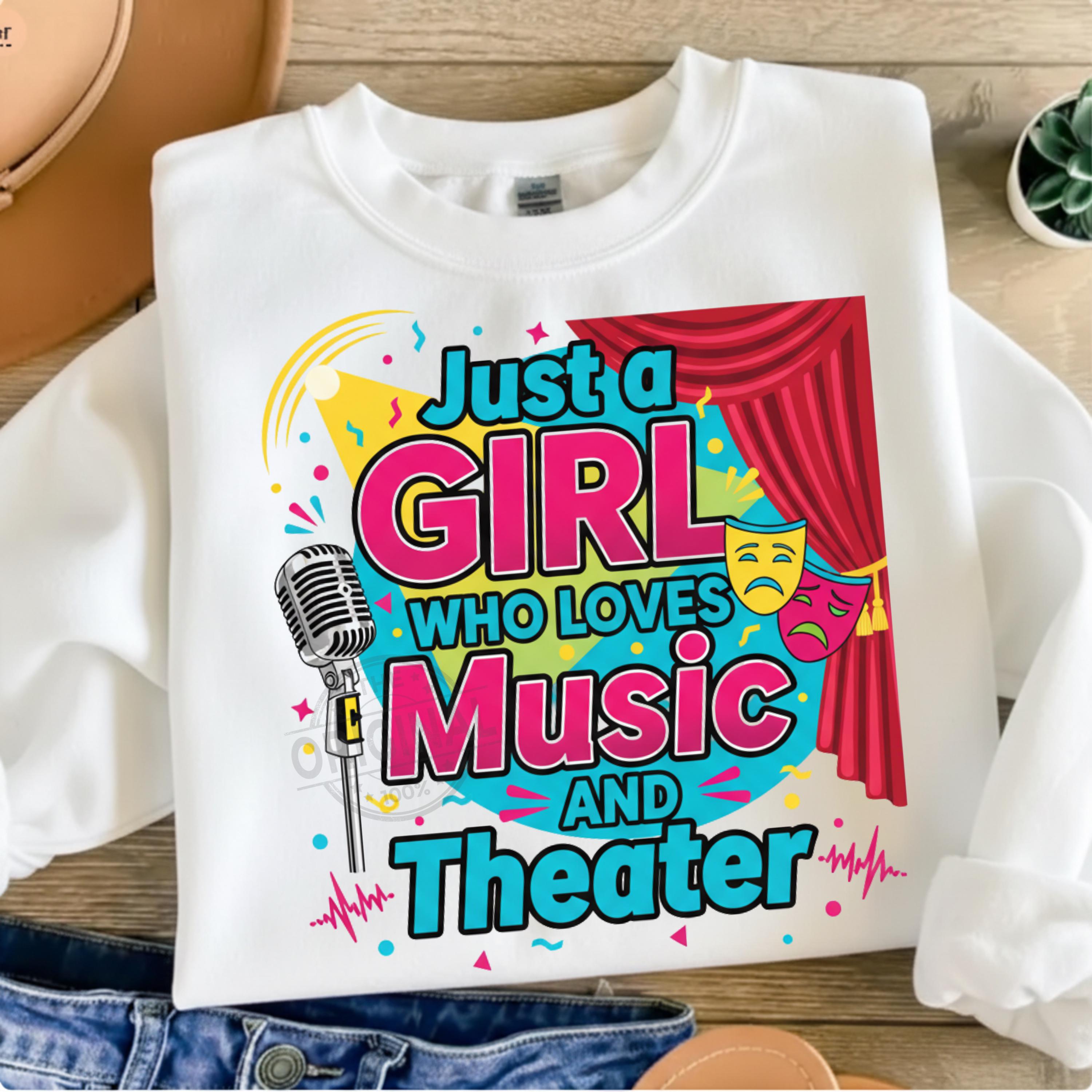 Show off your artistic passion with this Just a Girl Who Loves Music and Theater digital design — perfect for musical lovers, theater fans, drama students, performers, choir members, and creative girls who adore the stage. This stylish and expressive design works beautifully for shirts, mugs, posters, stickers, scrapbooking, and digital crafting projects.