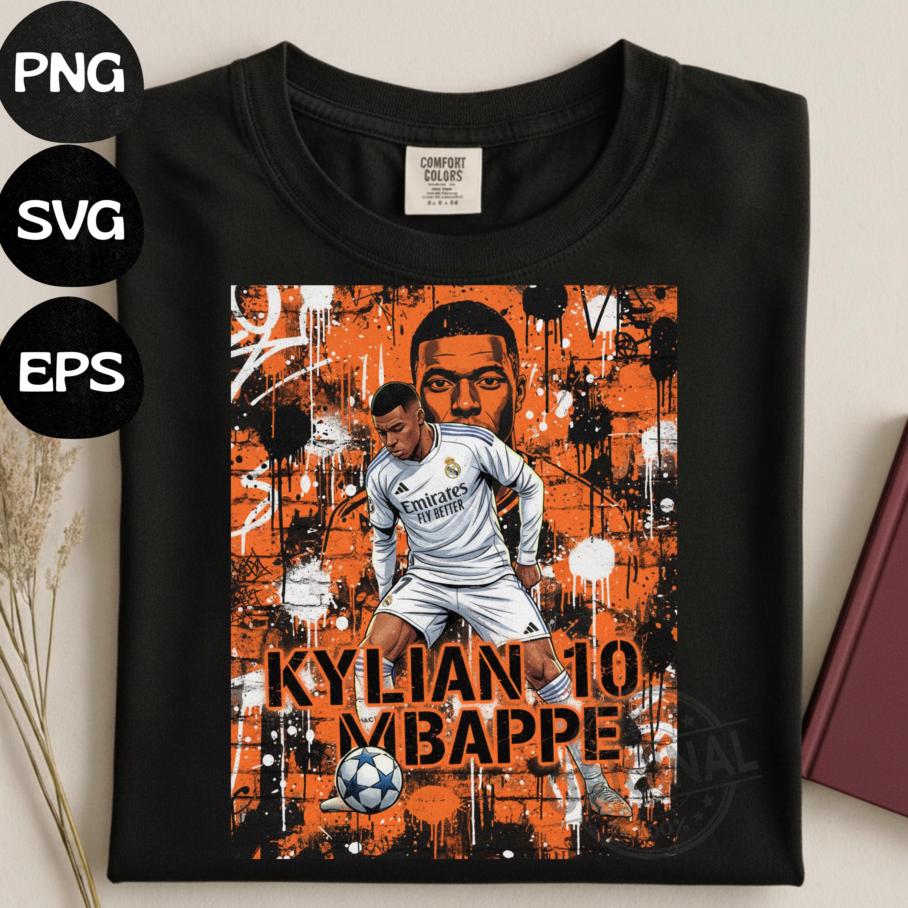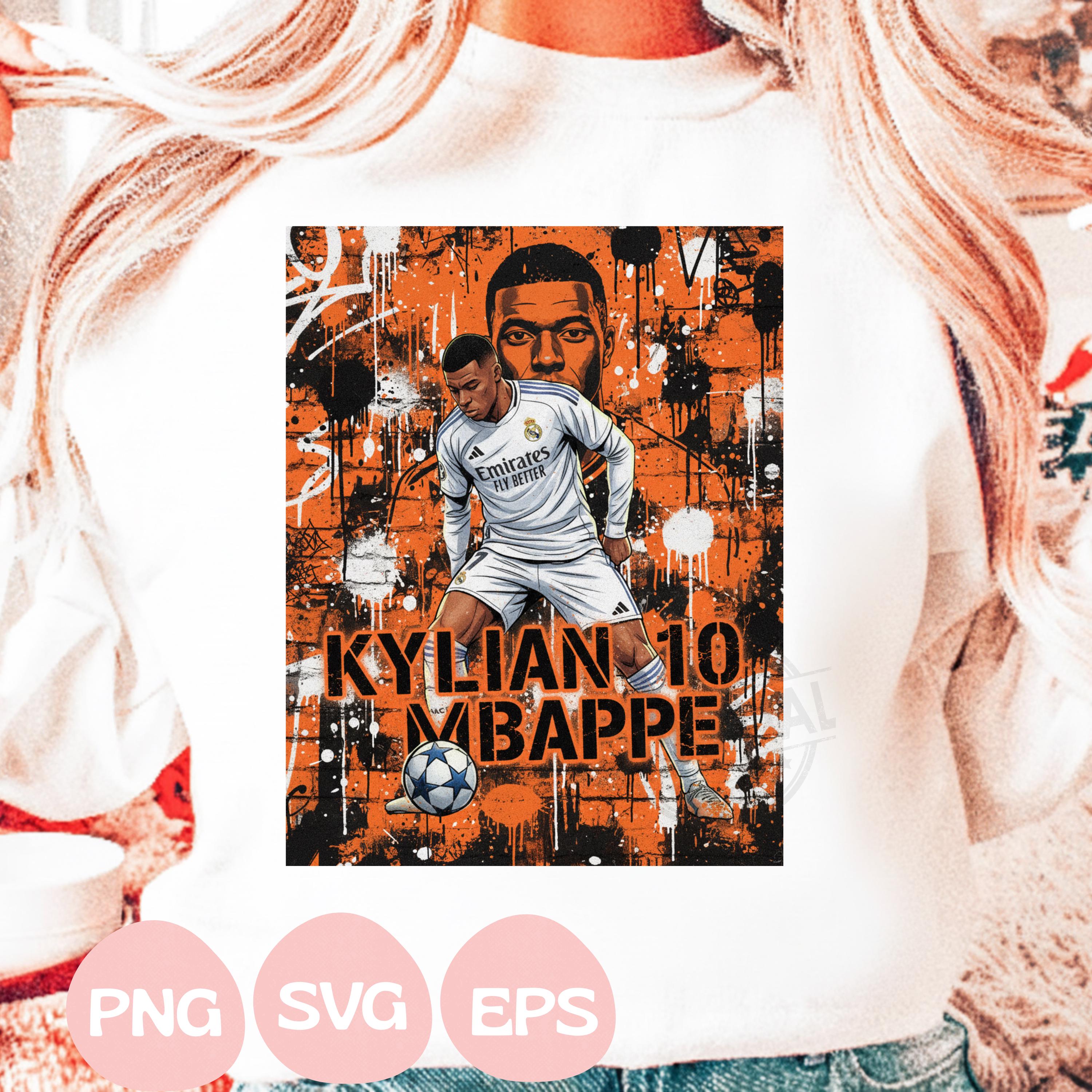 Create stunning football apparel with this high-quality Mbappe Comic Shirt Design, Football Player Transfer Sublimation (PNG SVG EPS Instant Download) Perfect For T-shirts, sweaters, mugs, stickers, cards, tumblers, and all holiday crafting