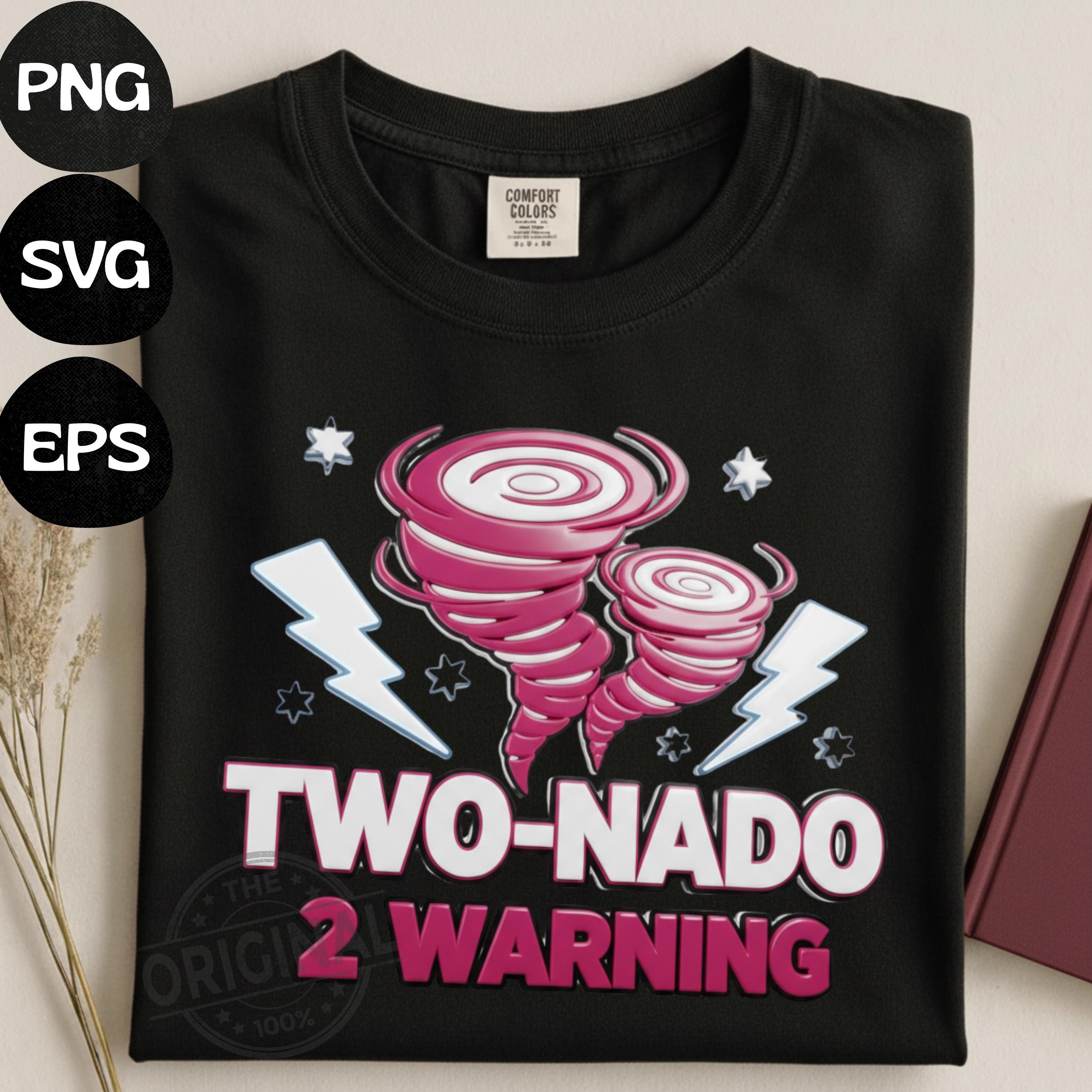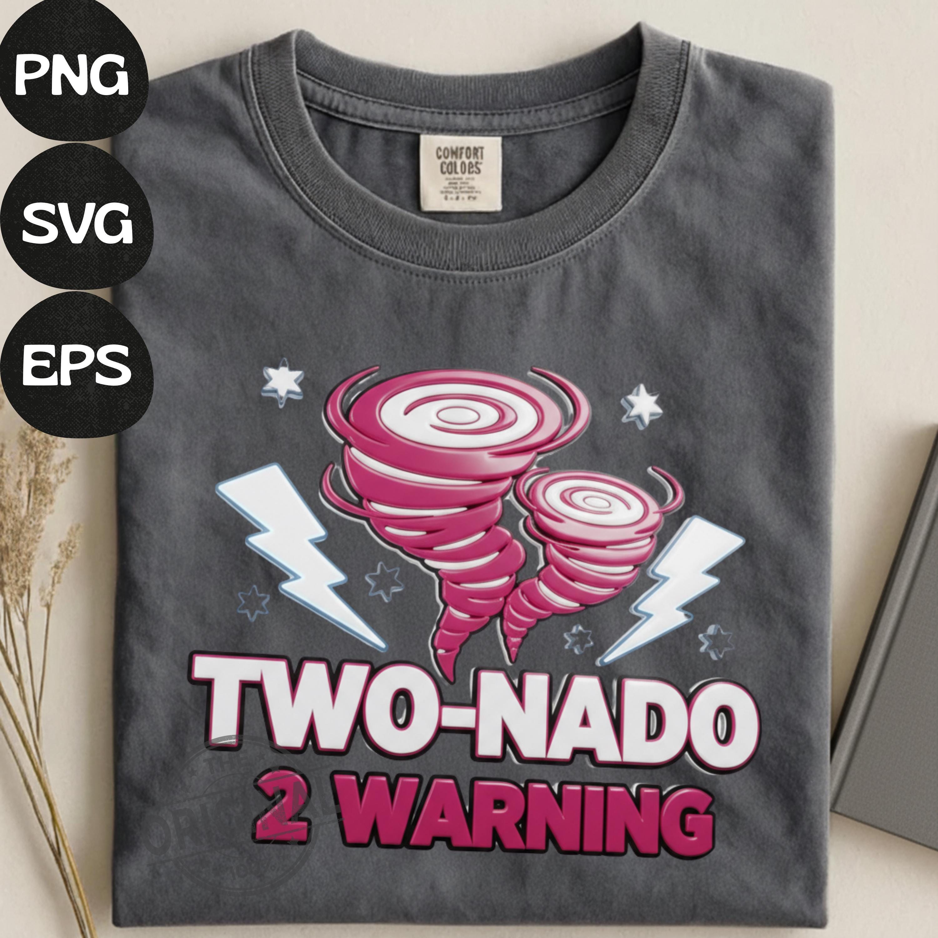 Two-nado Warning 2nd Birthday PNG SVG, Pink Tornado Party Shirt Design (Digital Download)
