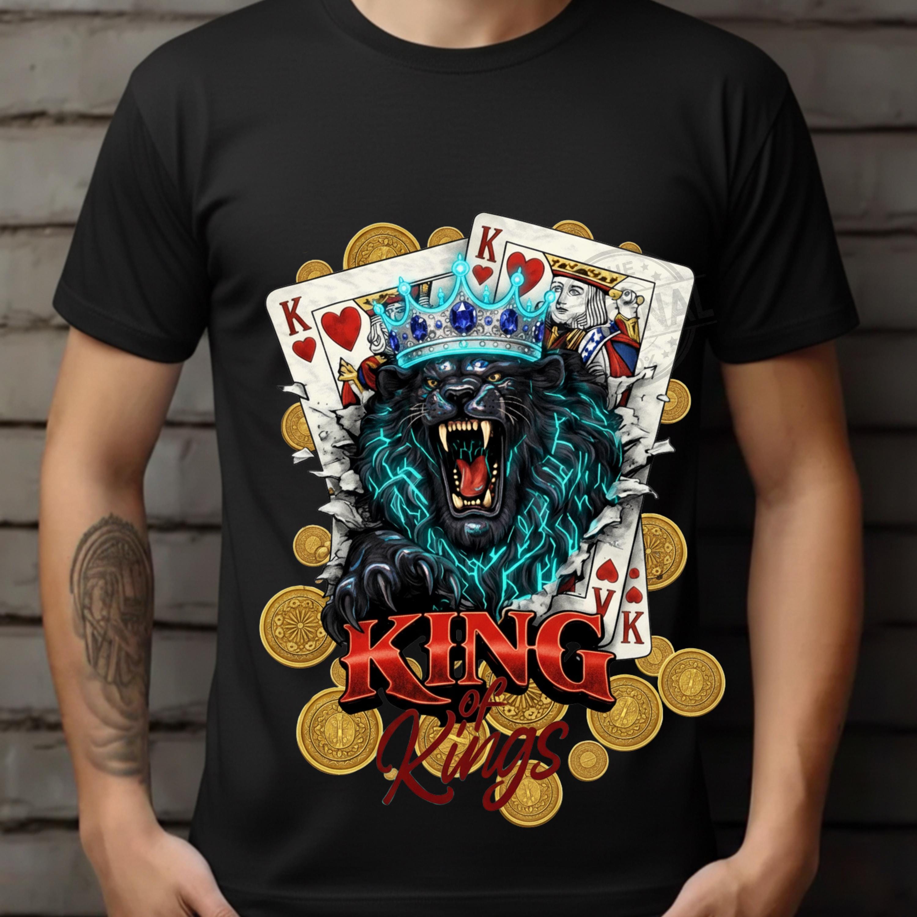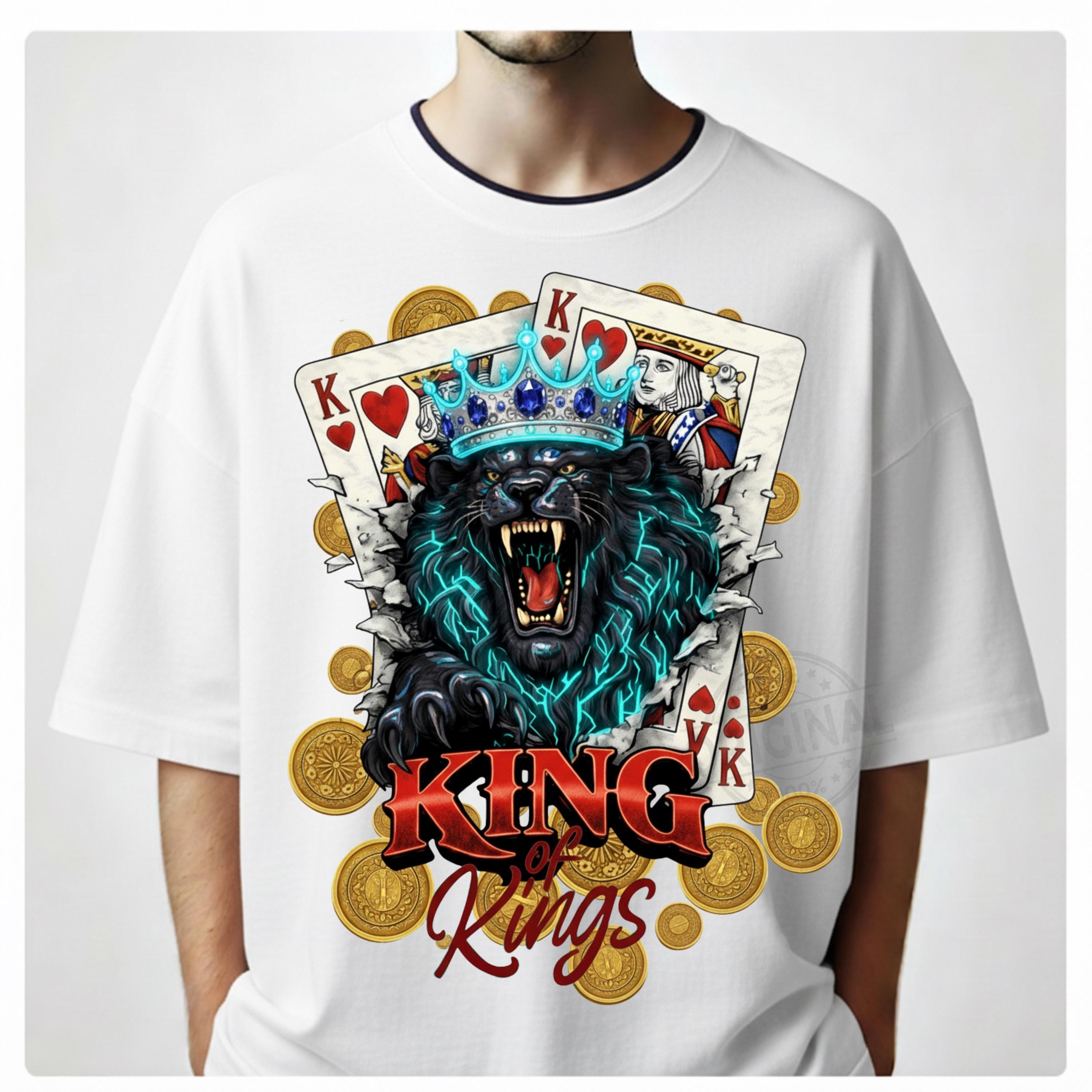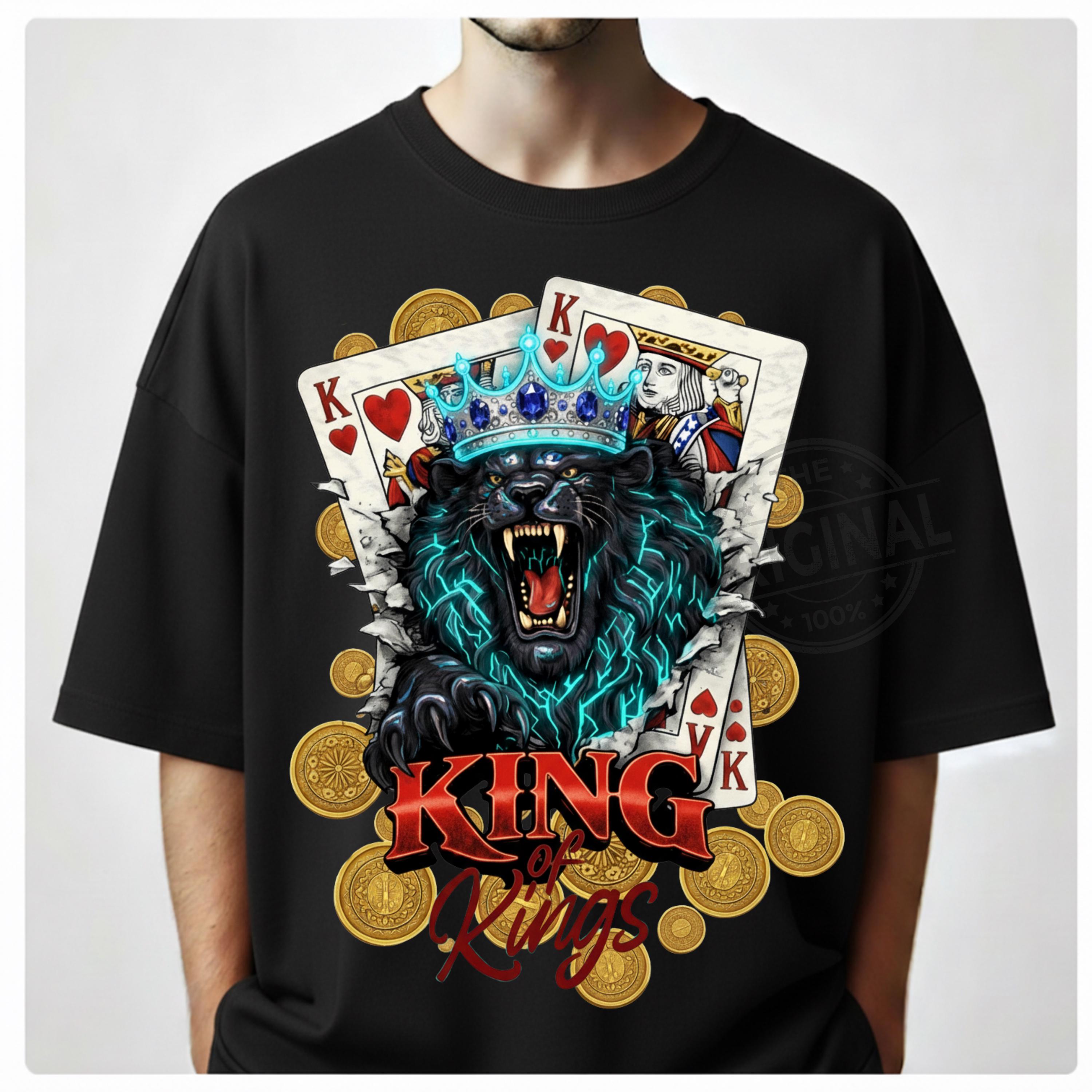 Bold and fierce King of Kings 👑 design featuring a roaring lion wearing a crown with playing cards – a perfect combination of royalty, strength and card game vibes, Ideal for poker lovers, casino fans, card players and anyone who loves powerful, masculine designs with attitude.