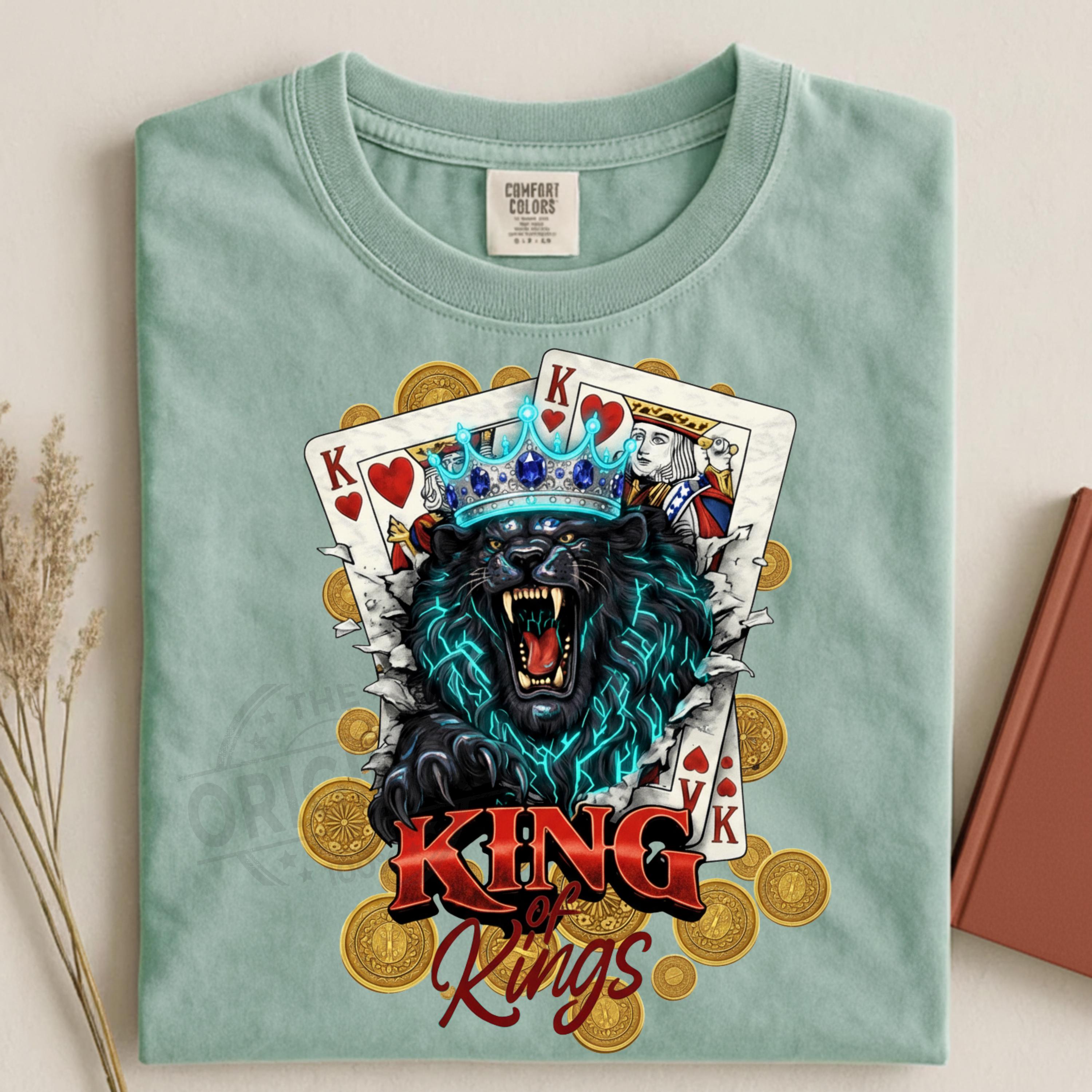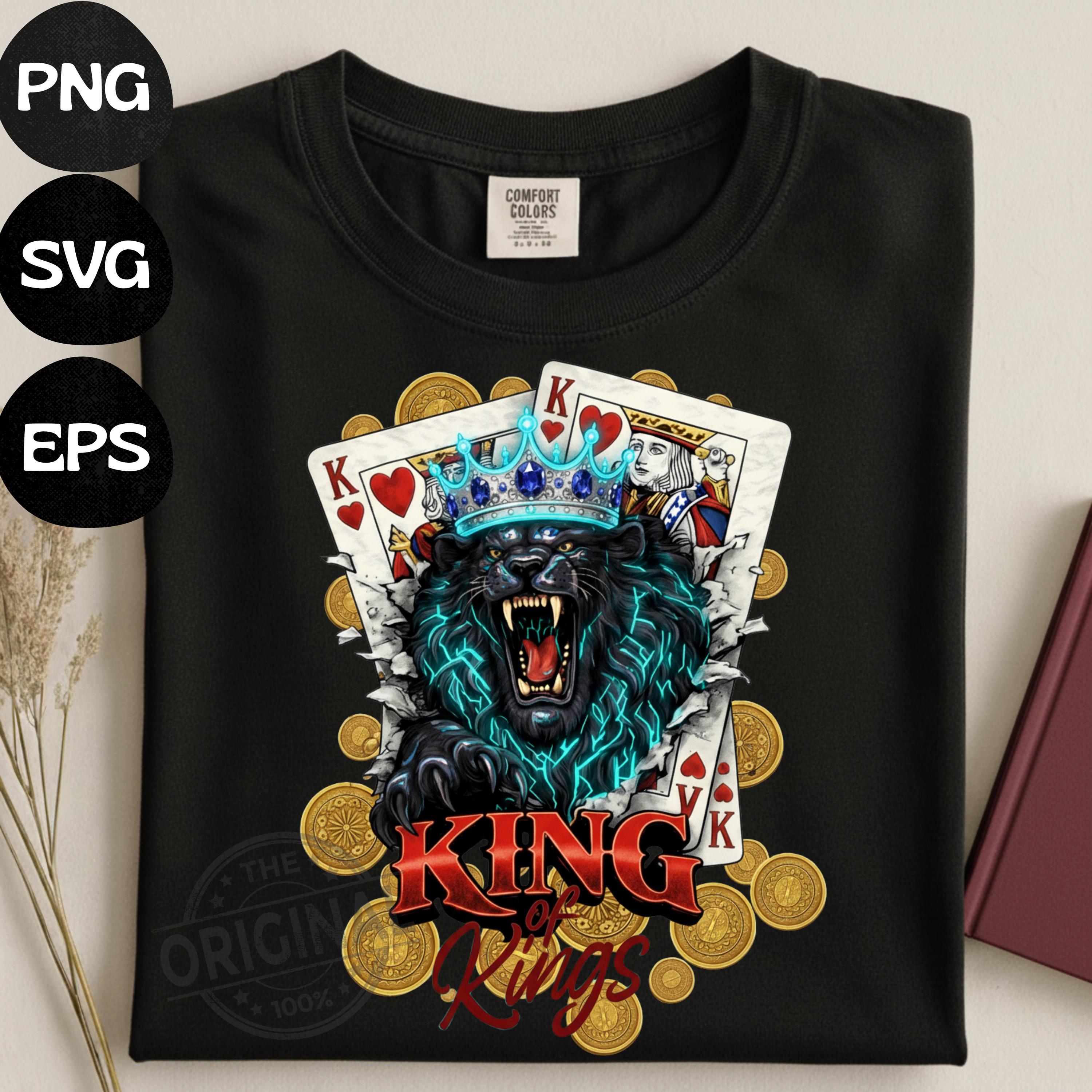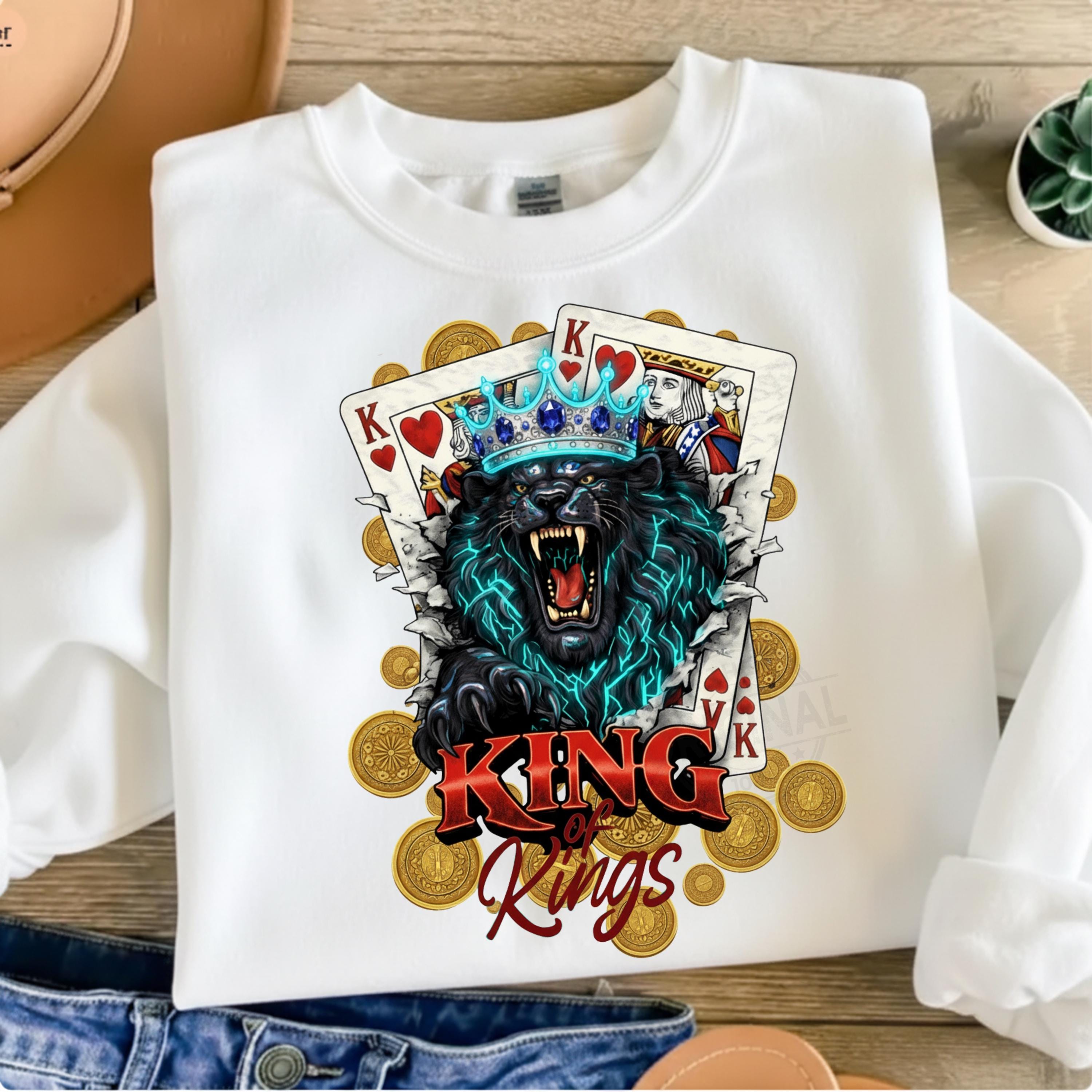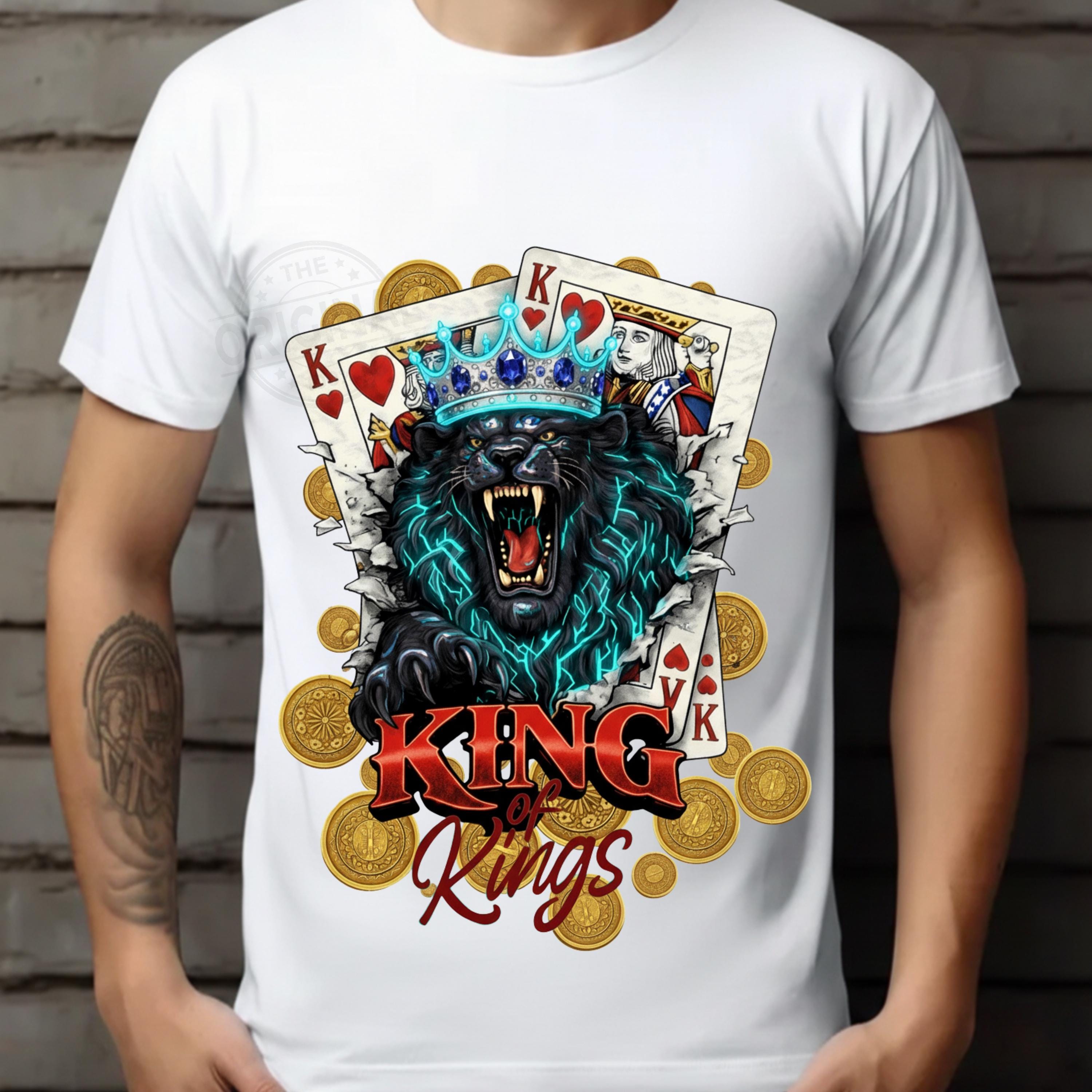Bold and fierce King of Kings 👑 design featuring a roaring lion wearing a crown with playing cards – a perfect combination of royalty, strength and card game vibes, Ideal for poker lovers, casino fans, card players and anyone who loves powerful, masculine designs with attitude.