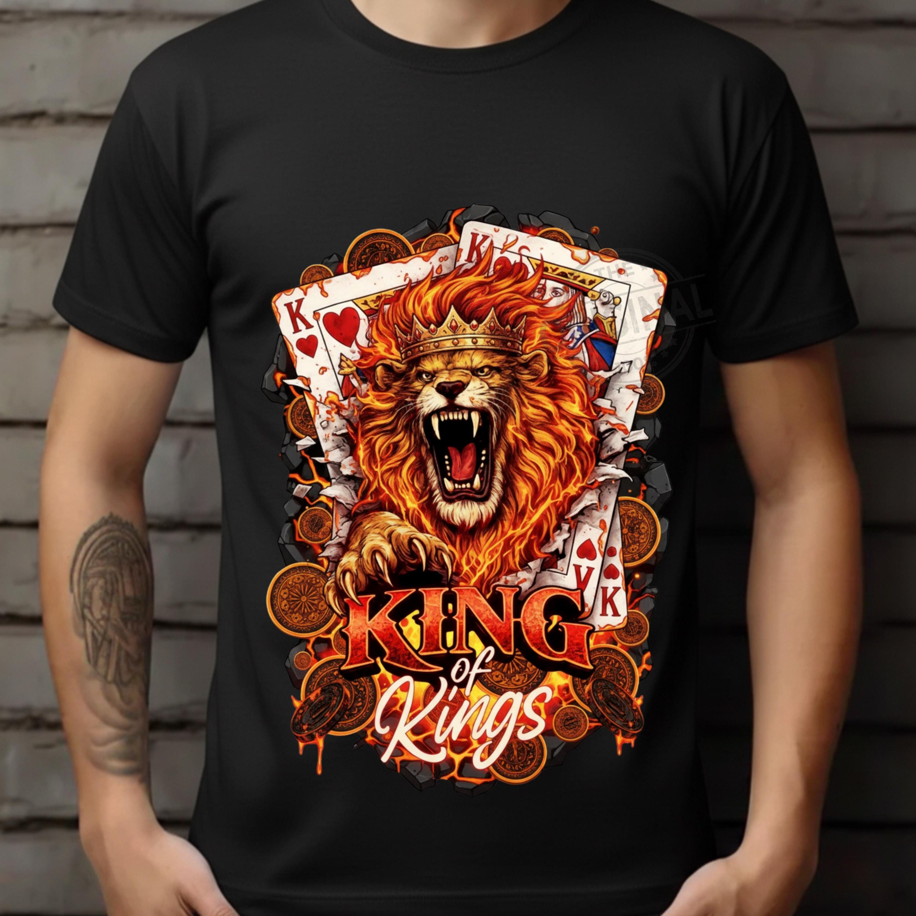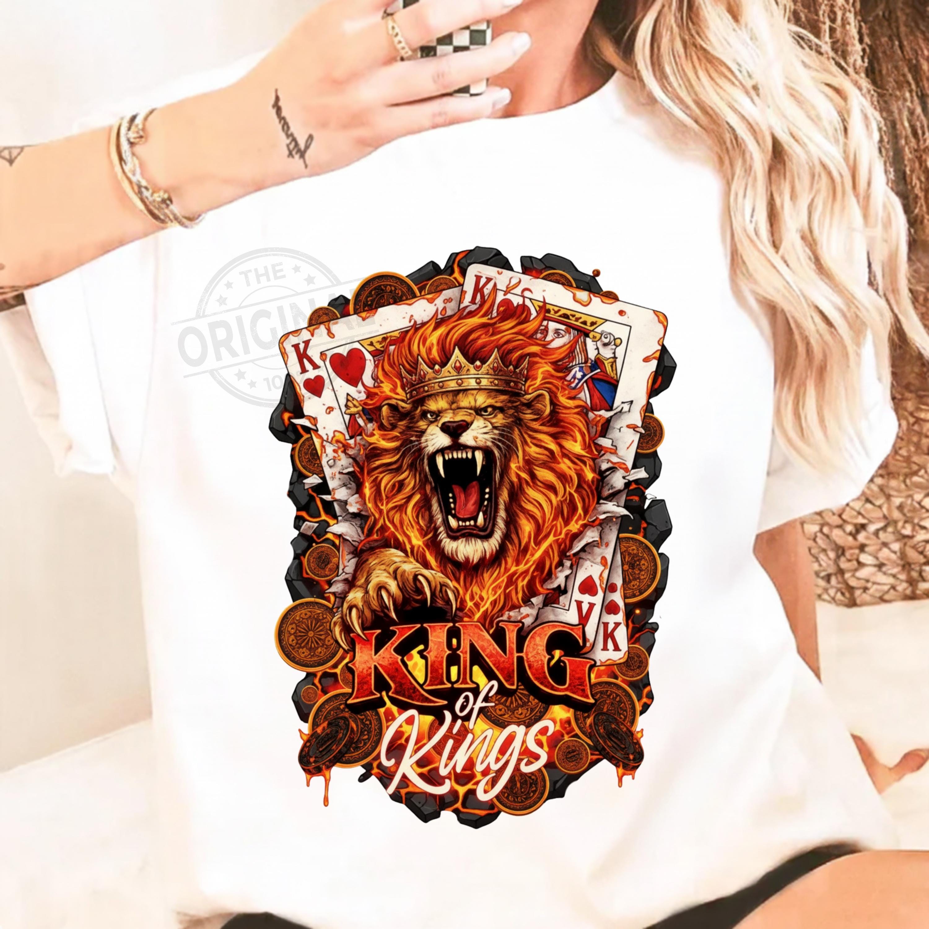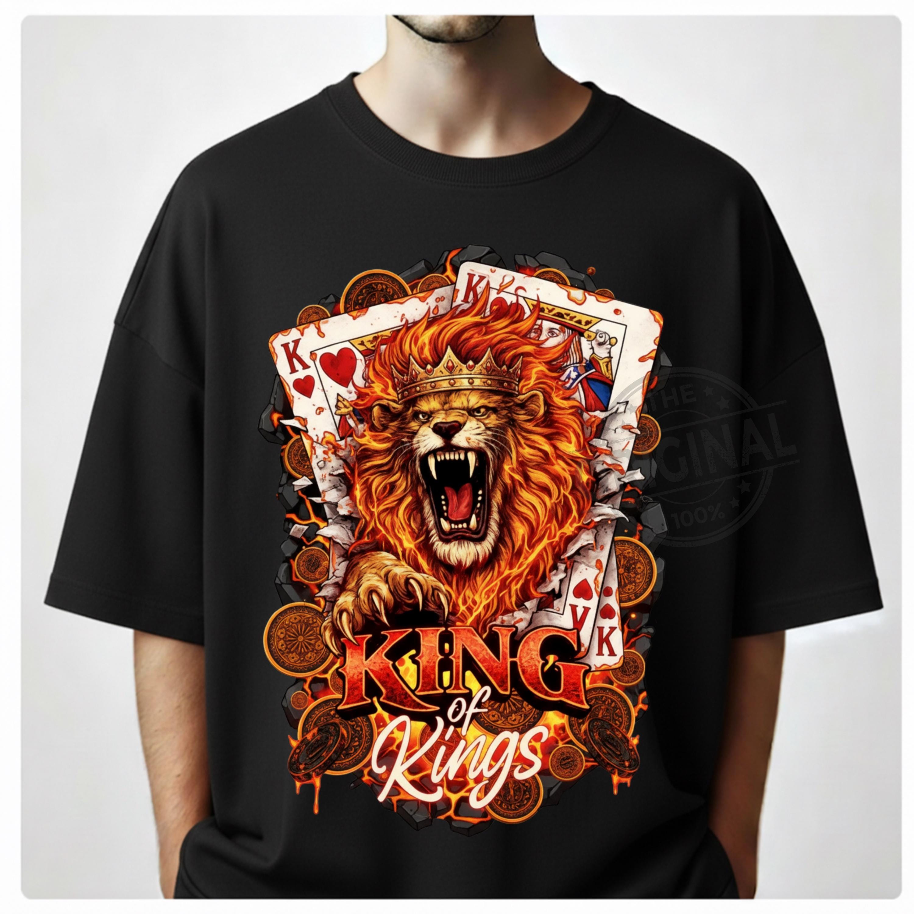 King of Kings Shirt PNG SVG, Lion King Shirt Design, Lion King Playing Cards Design, Royal Gambling T-Shirt Graphic, Poker King Sublimation a perfect combination of royalty, strength and card game vibes, Ideal for poker lovers, casino fans, card players and anyone who loves powerful, masculine designs with attitude.