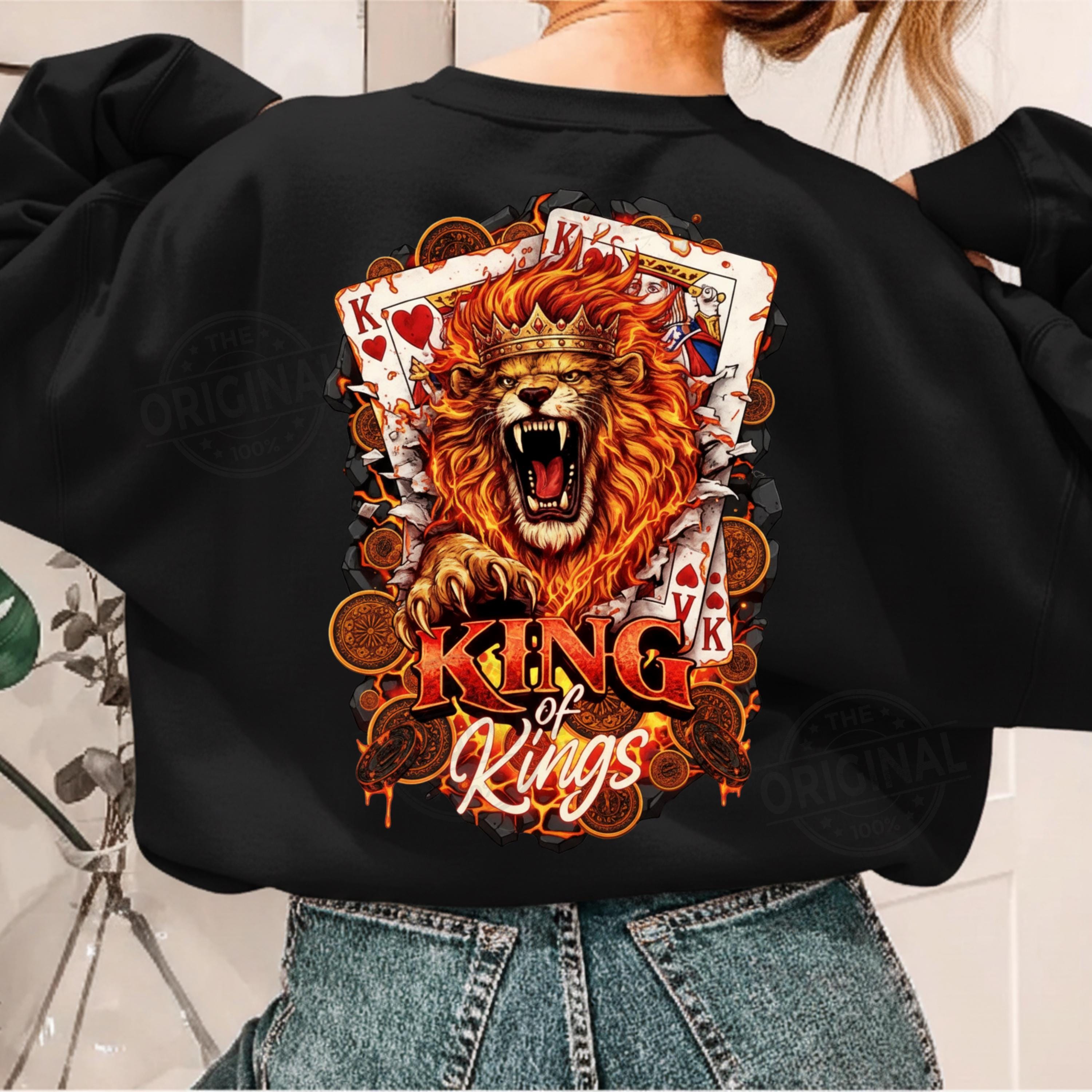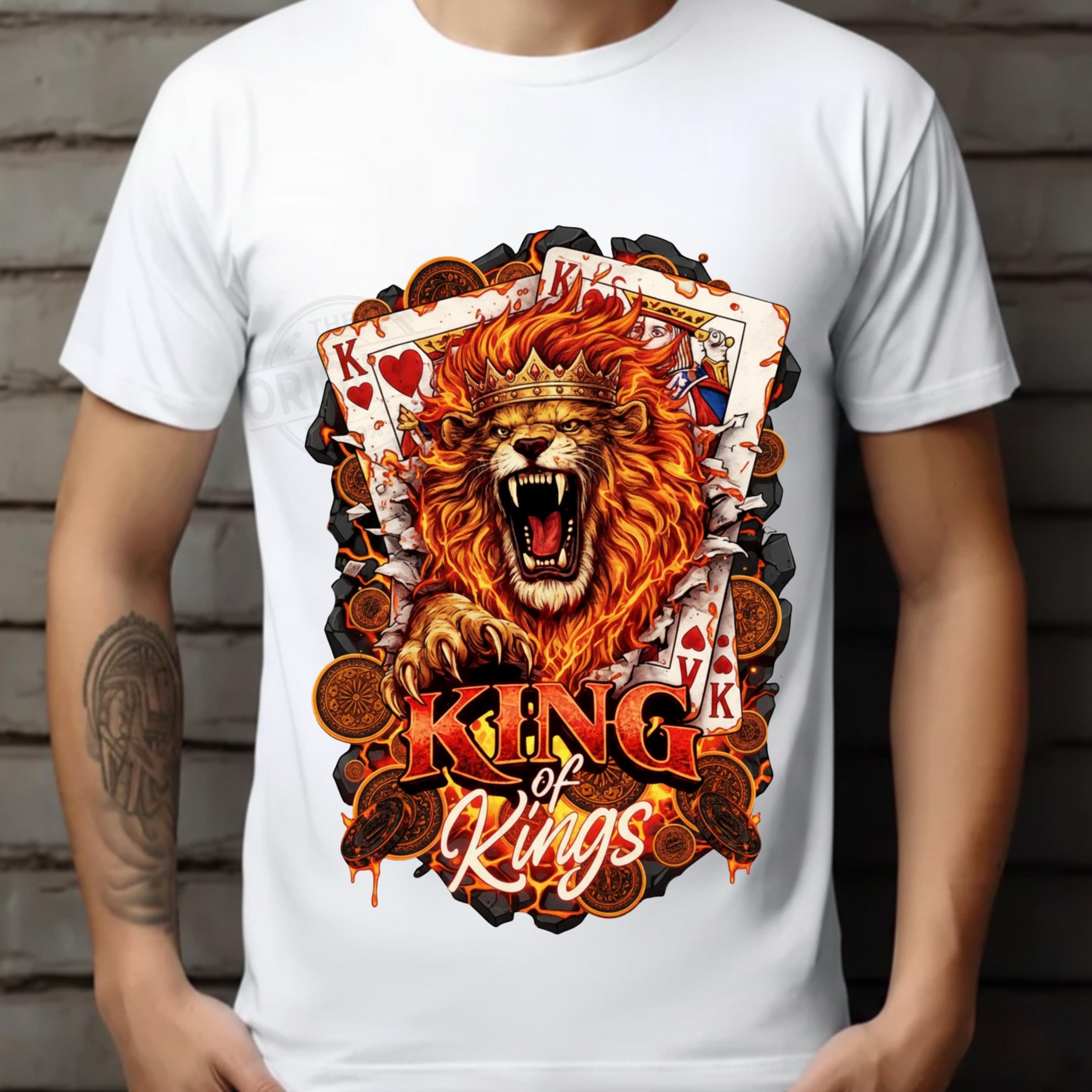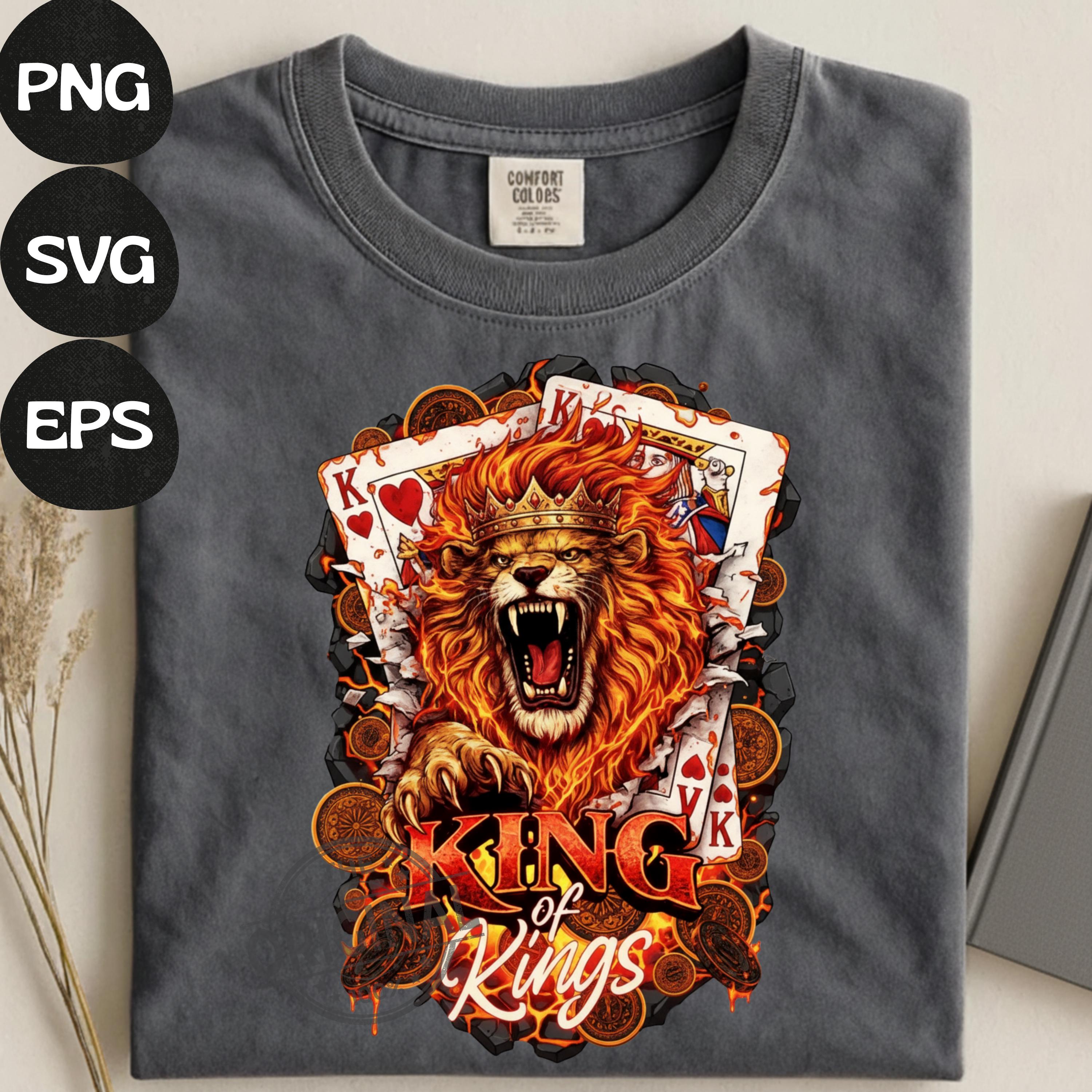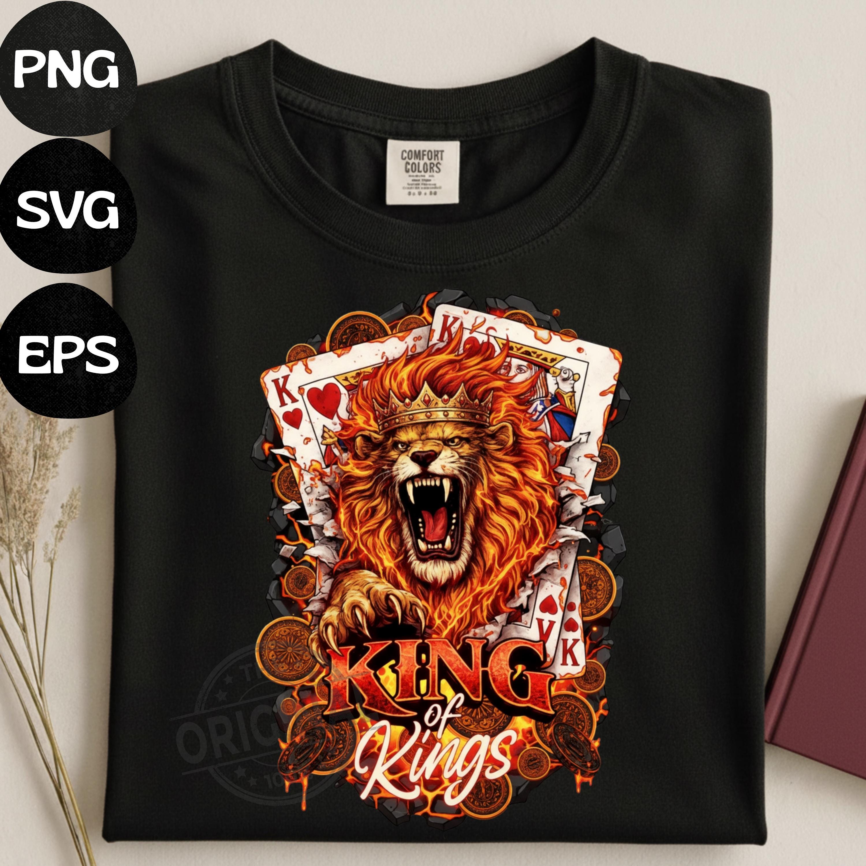 King of Kings Shirt PNG SVG, Lion King Shirt Design, Lion King Playing Cards Design, Royal Gambling T-Shirt Graphic, Poker King Sublimation a perfect combination of royalty, strength and card game vibes, Ideal for poker lovers, casino fans, card players and anyone who loves powerful, masculine designs with attitude.
