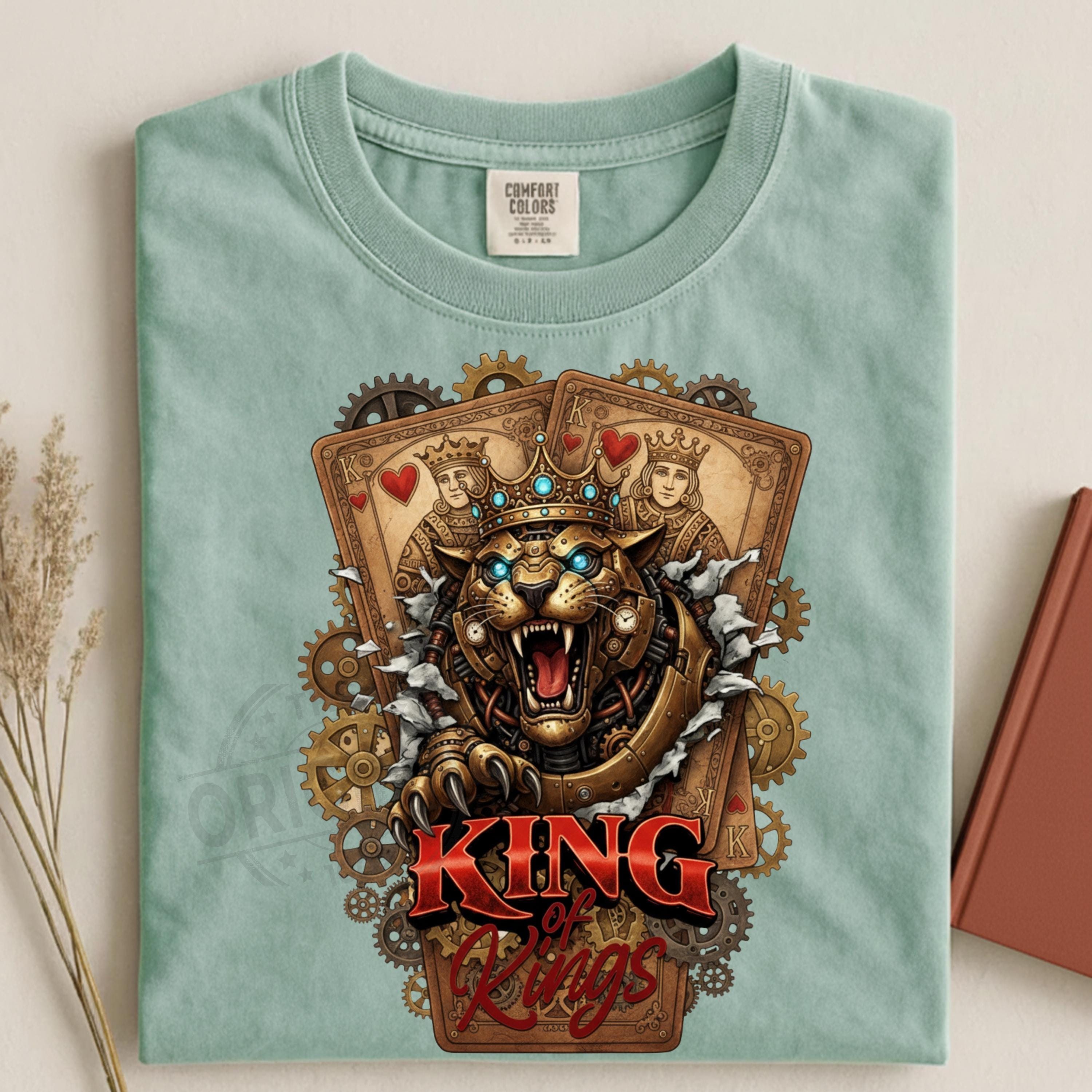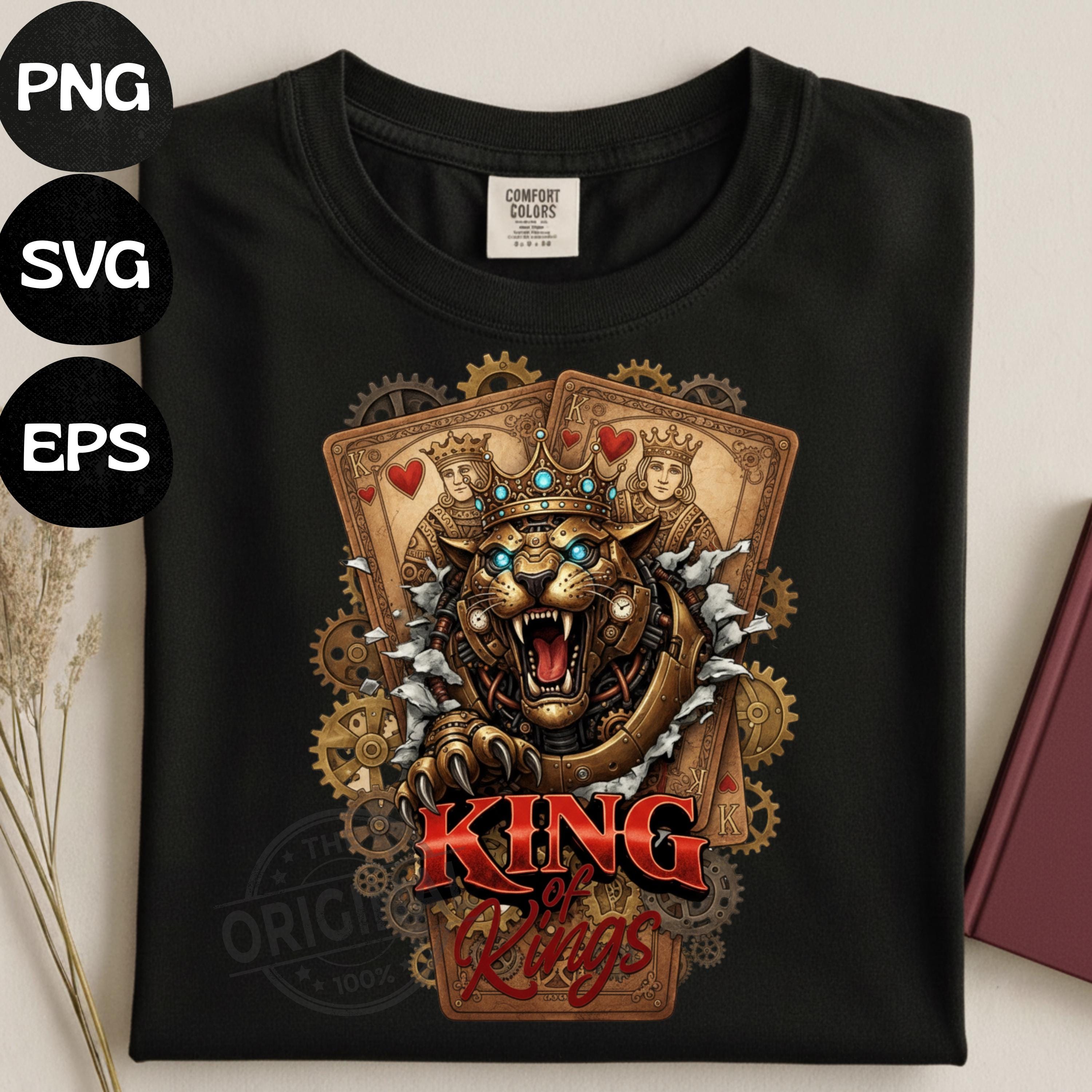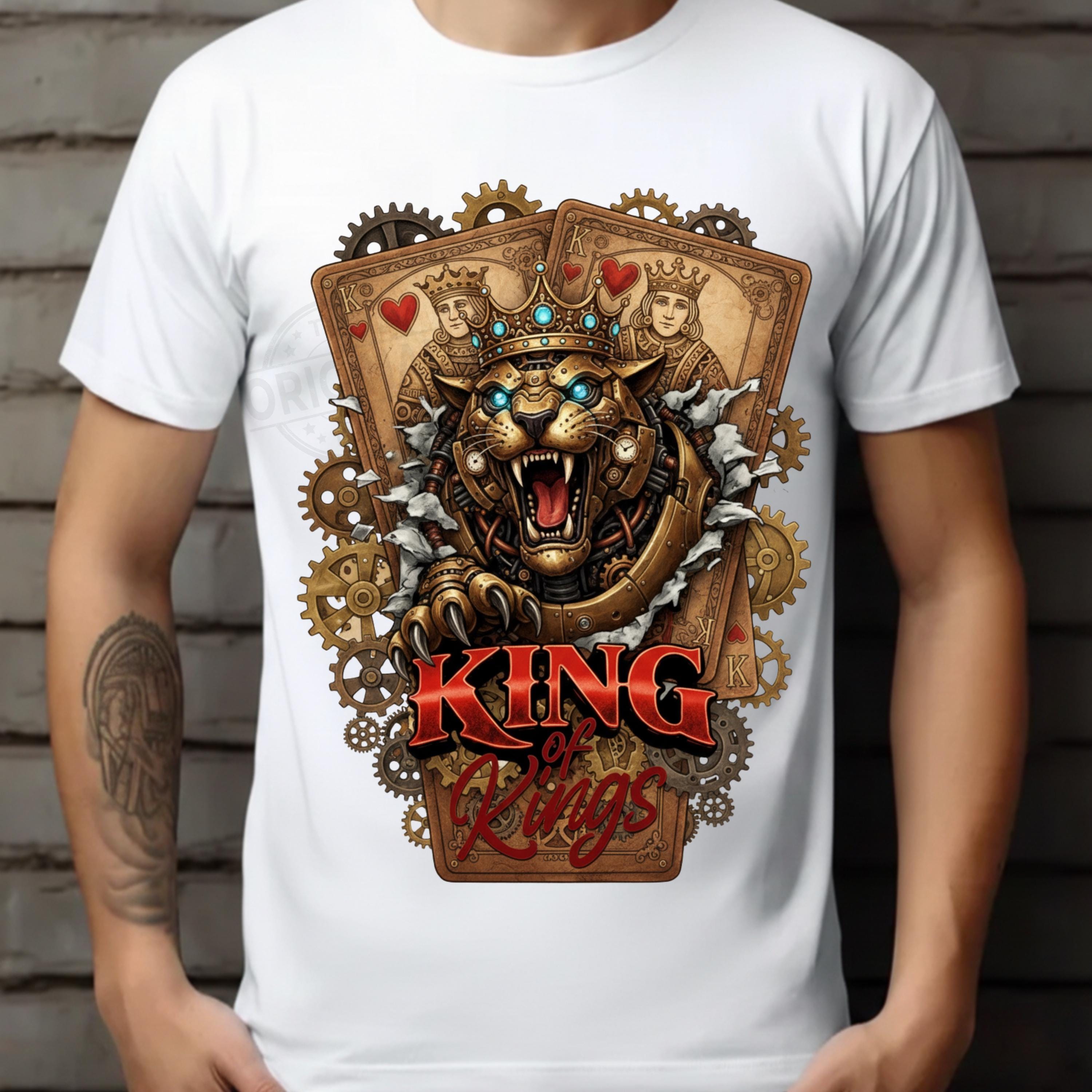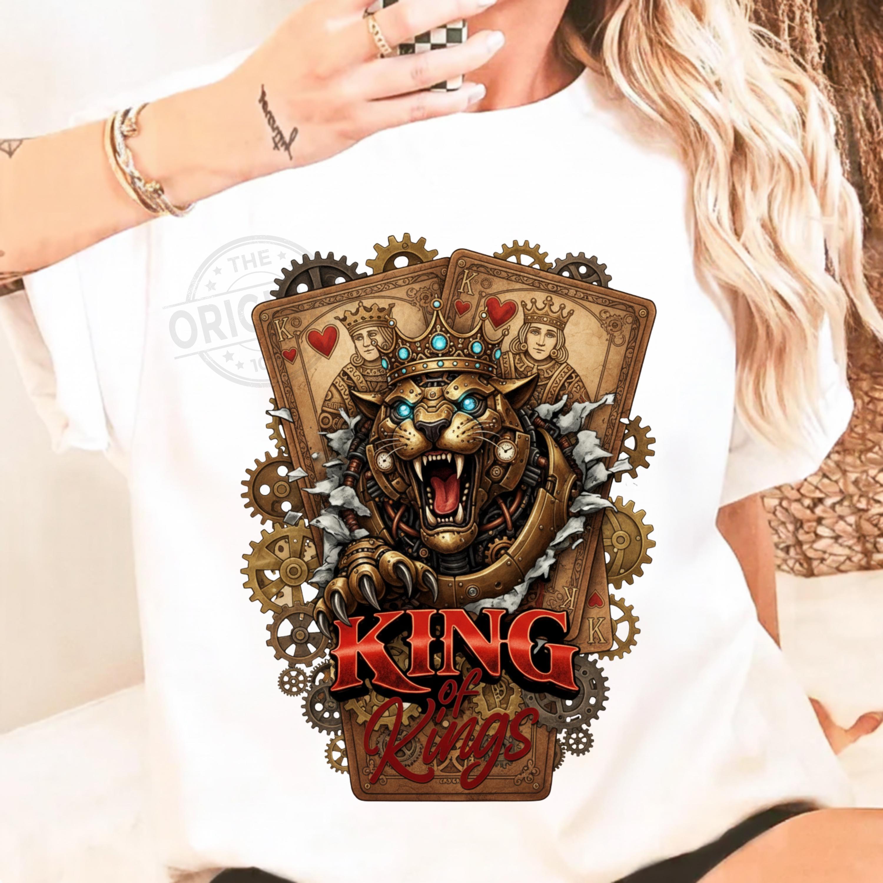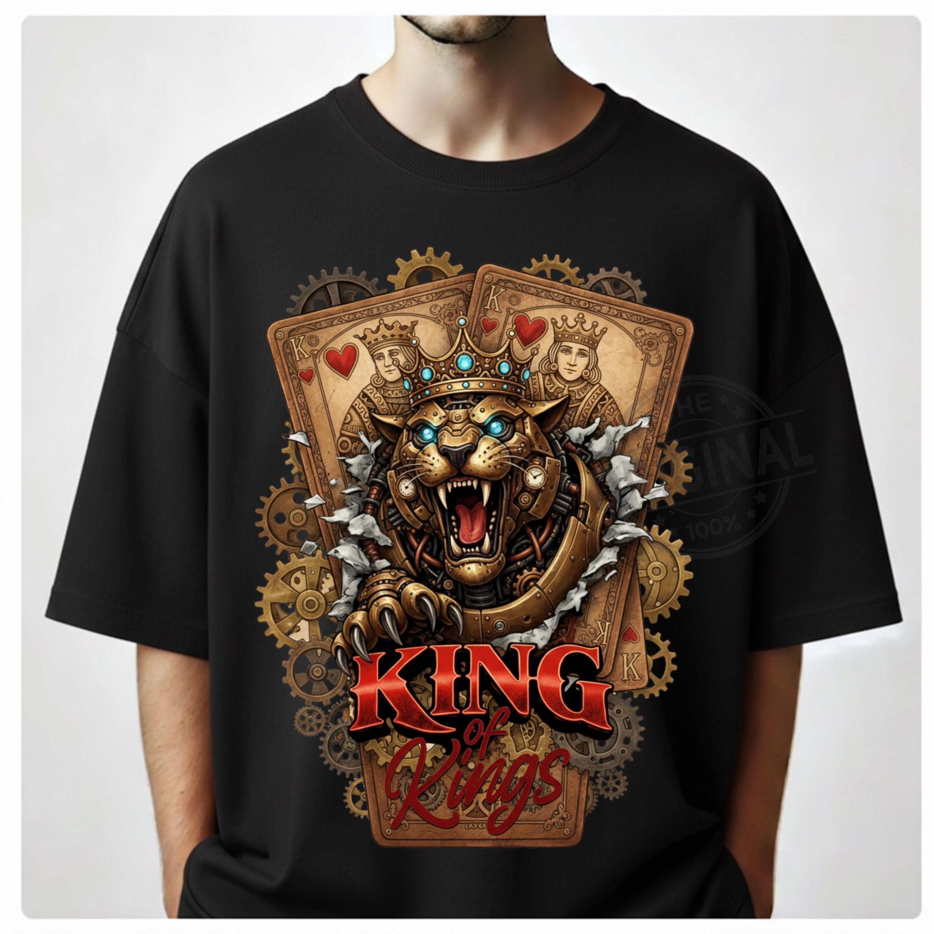 King of Kings Shirt SVG PNG , Lion King Shirt Design, Lion King Playing Cards Design, Royal Gambling T-Shirt Graphic, Poker King Sublimation a perfect combination of royalty, strength and card game vibes, Ideal for poker lovers, casino fans, card players and anyone who loves powerful, masculine designs with attitude.