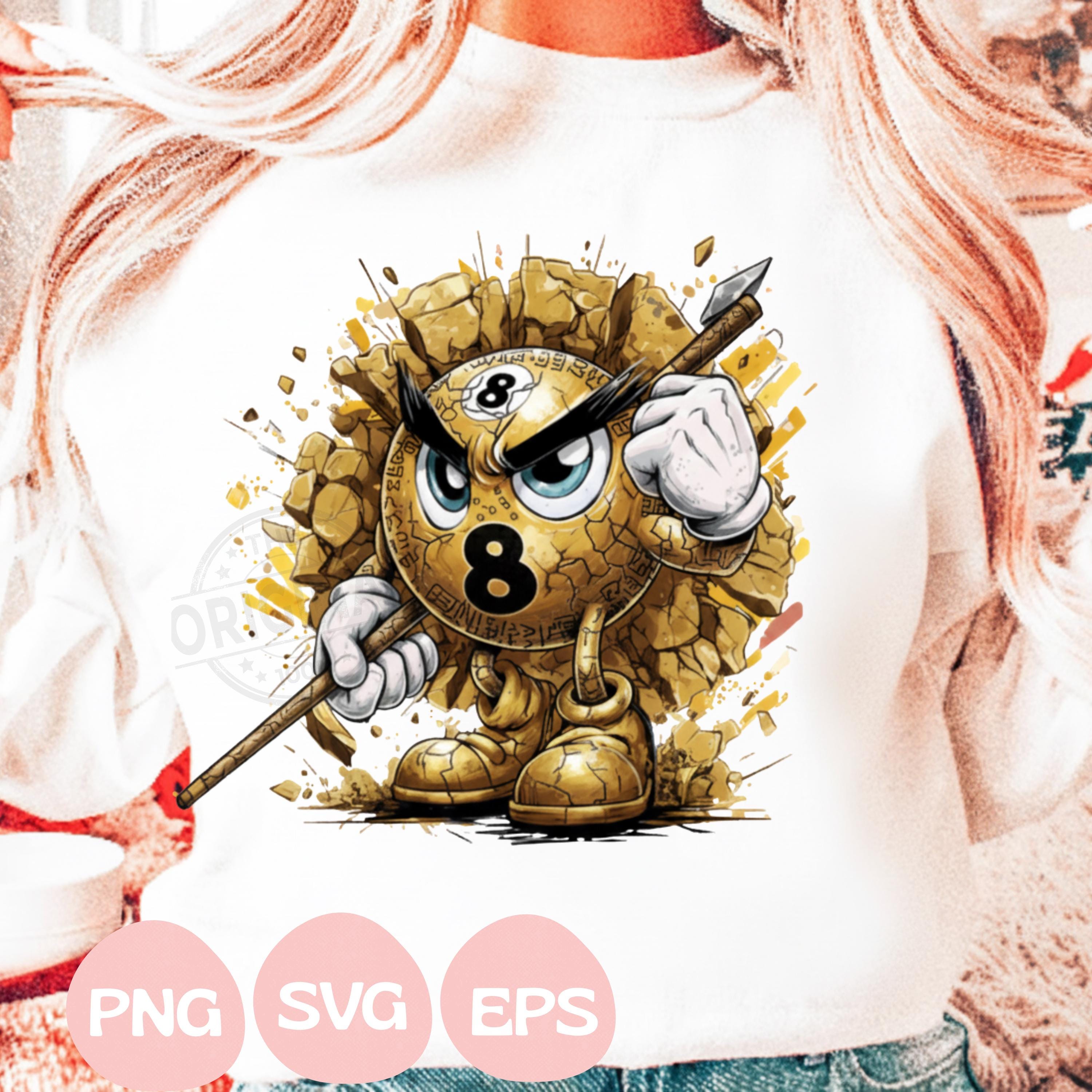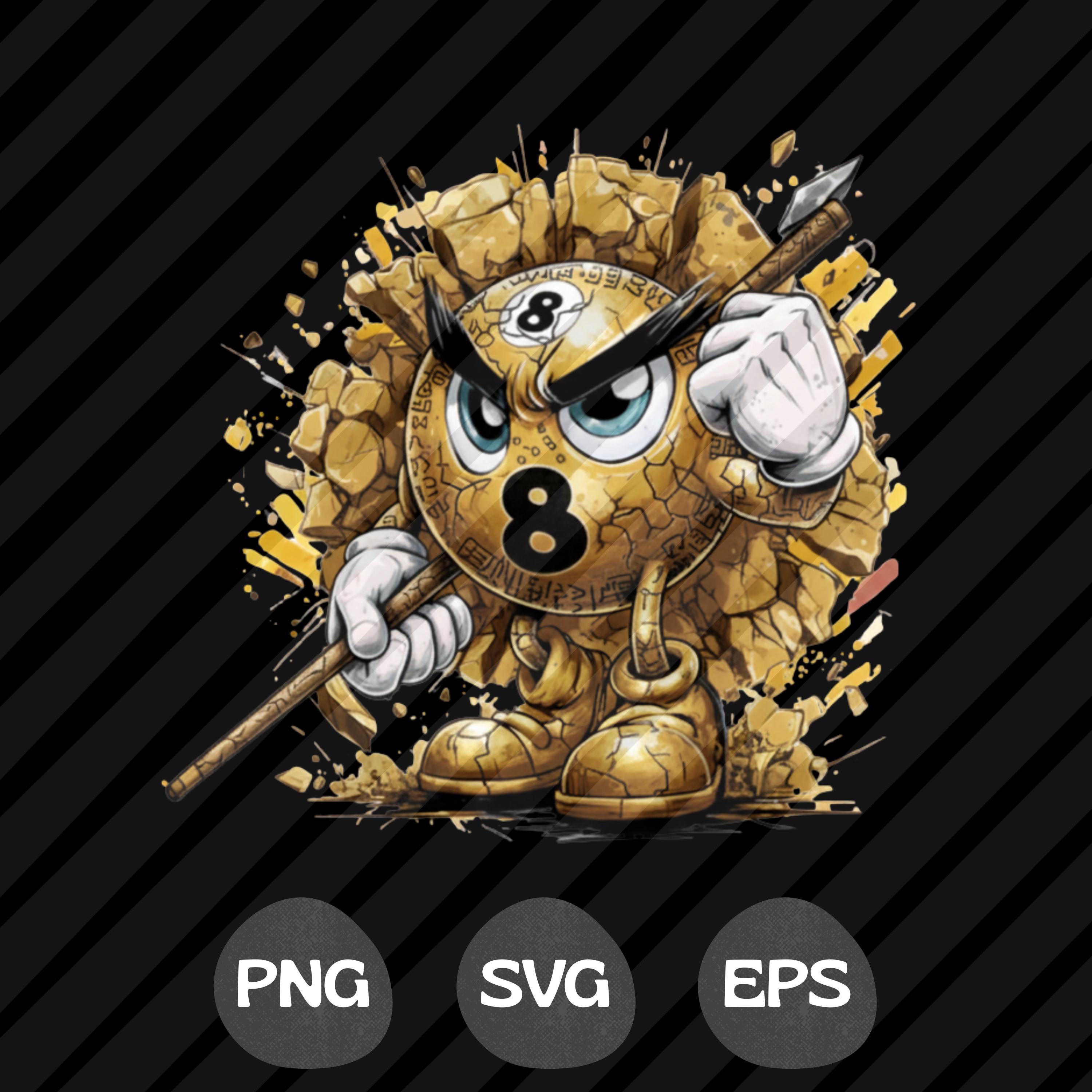 Angry 8 Ball PNG SVG Pool Billiards Shirt Design, Eight Ball Warrior, Pool Player T-Shirt PNG, Cue Stick Cartoon Graphic
