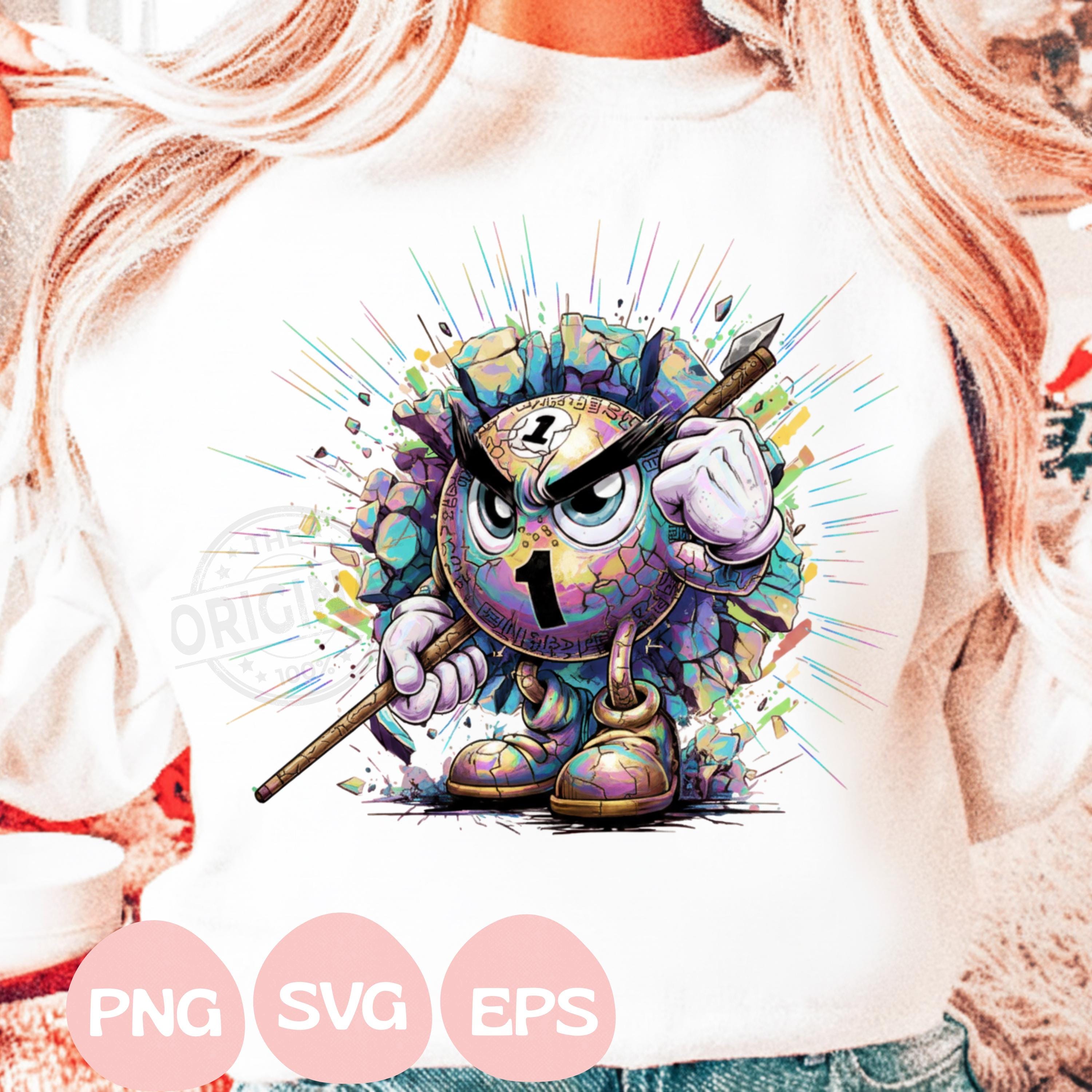 Angry 1 Ball PNG SVG EPS Pool Billiards Shirt Design, Billiard Ball Art, Pool Player T-Shirt PNG, Cue Stick Cartoon Graphic, Instant Download Perfect For T-shirts, sweaters, mugs, stickers, cards, tumblers, and more