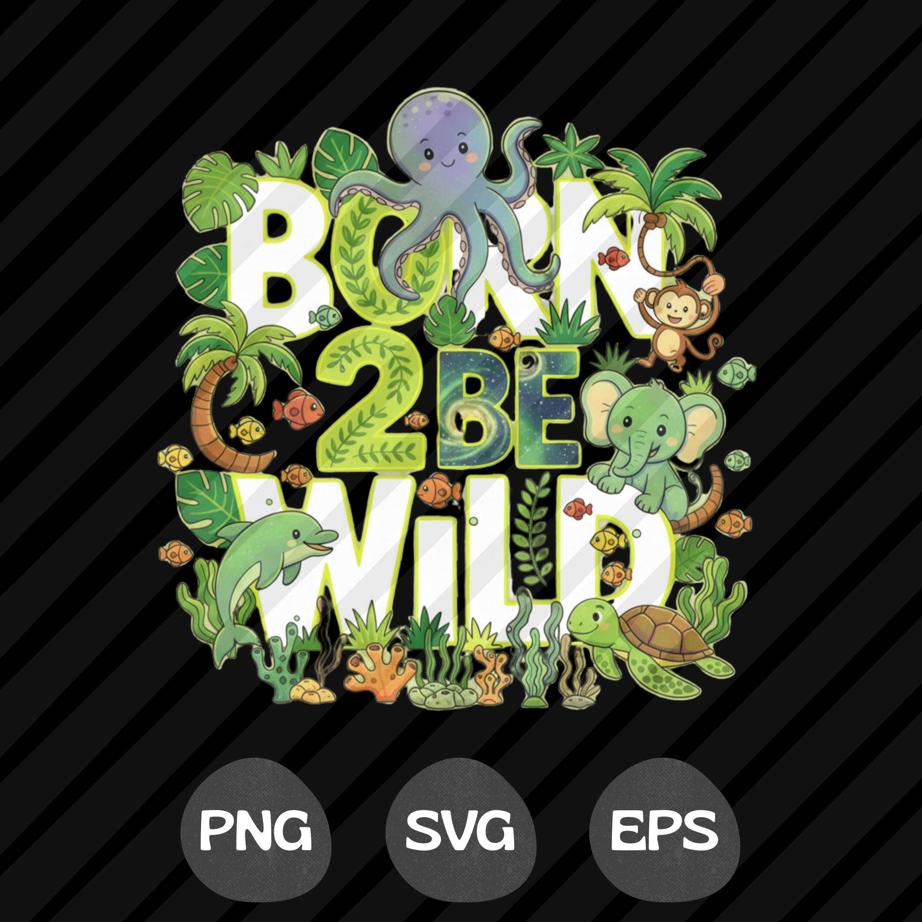 Born 2 Be Wild 2nd Birthday SVG PNG EPS Safari Jungle Party T-Shirt Design