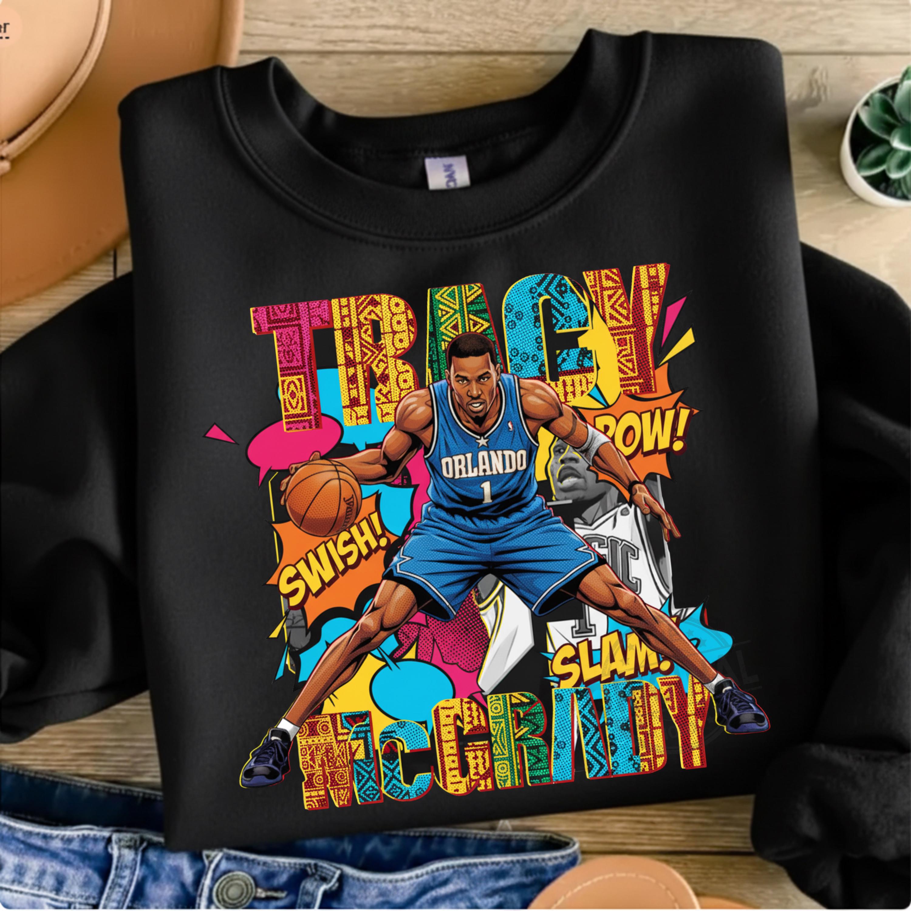 Tracy McGrady PNG T-Shirt Design, Basketball DTF Transfer, Basketball Lover Png, Basketball Comic Graphic Tee Sublimation Perfect For T-shirts, sweaters, mugs, stickers, cards, tumblers, and all holiday crafting
