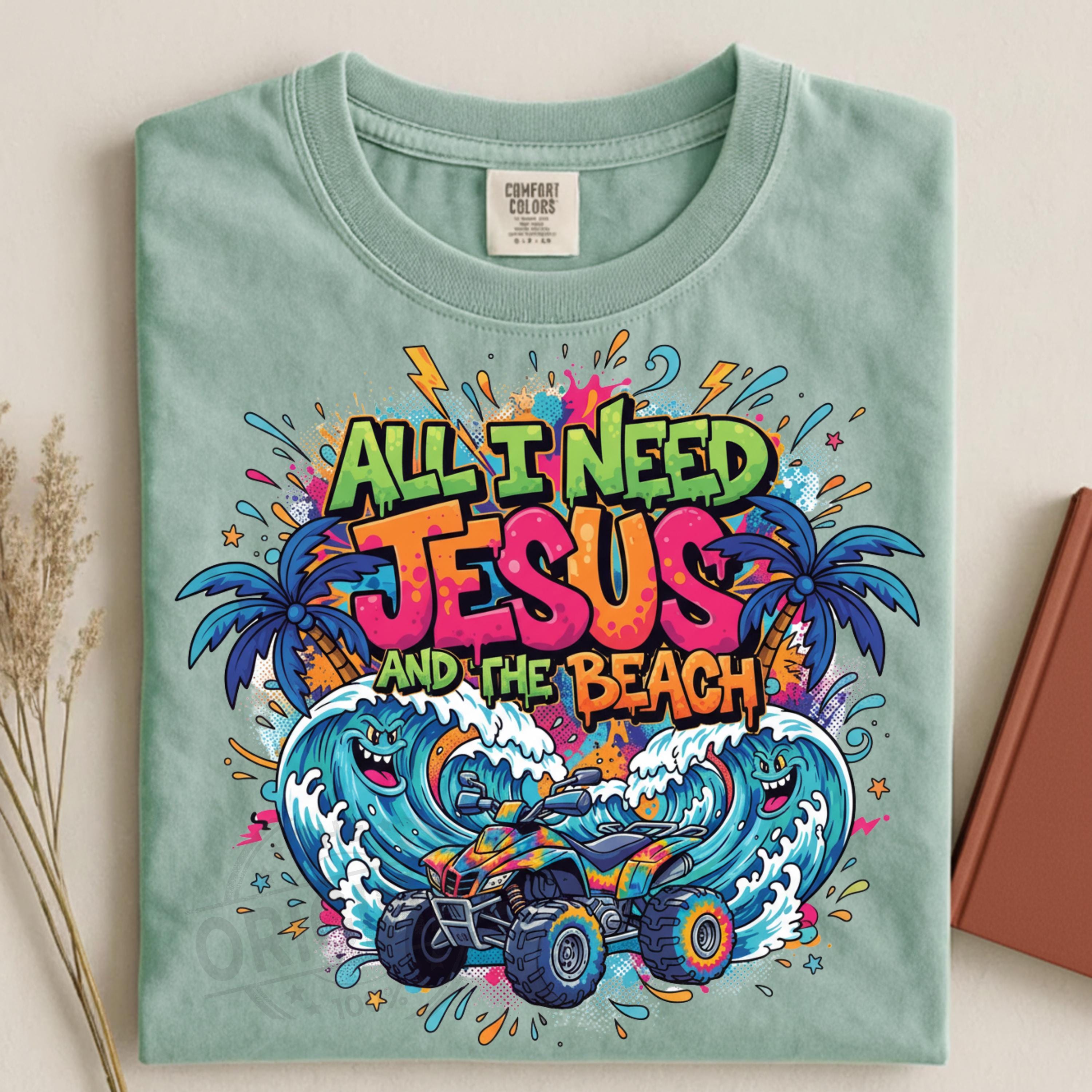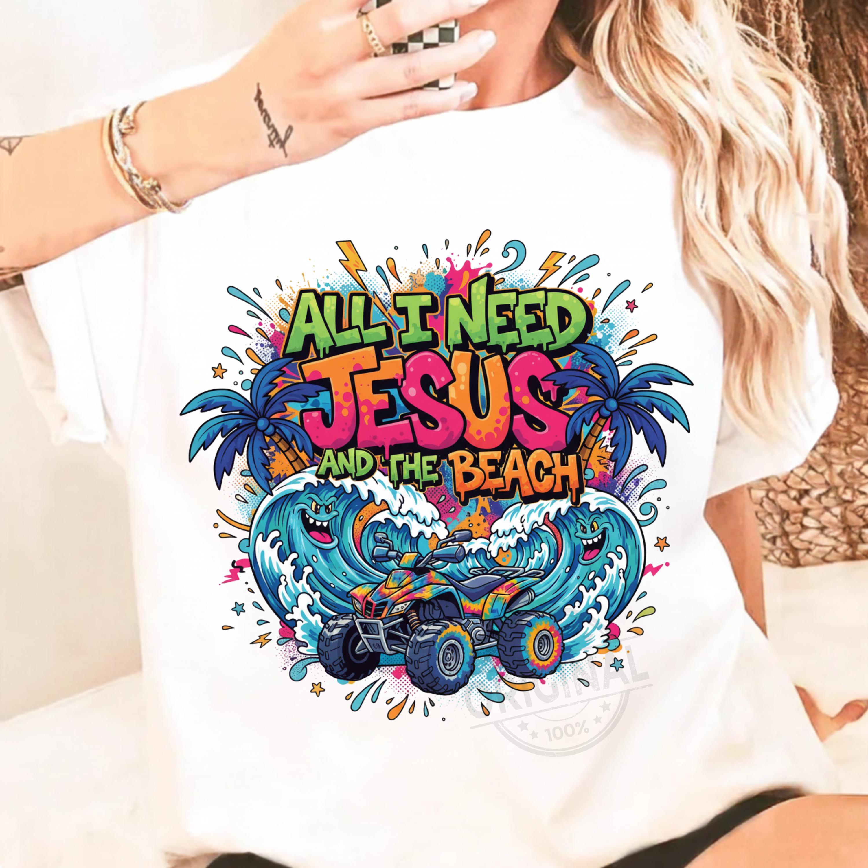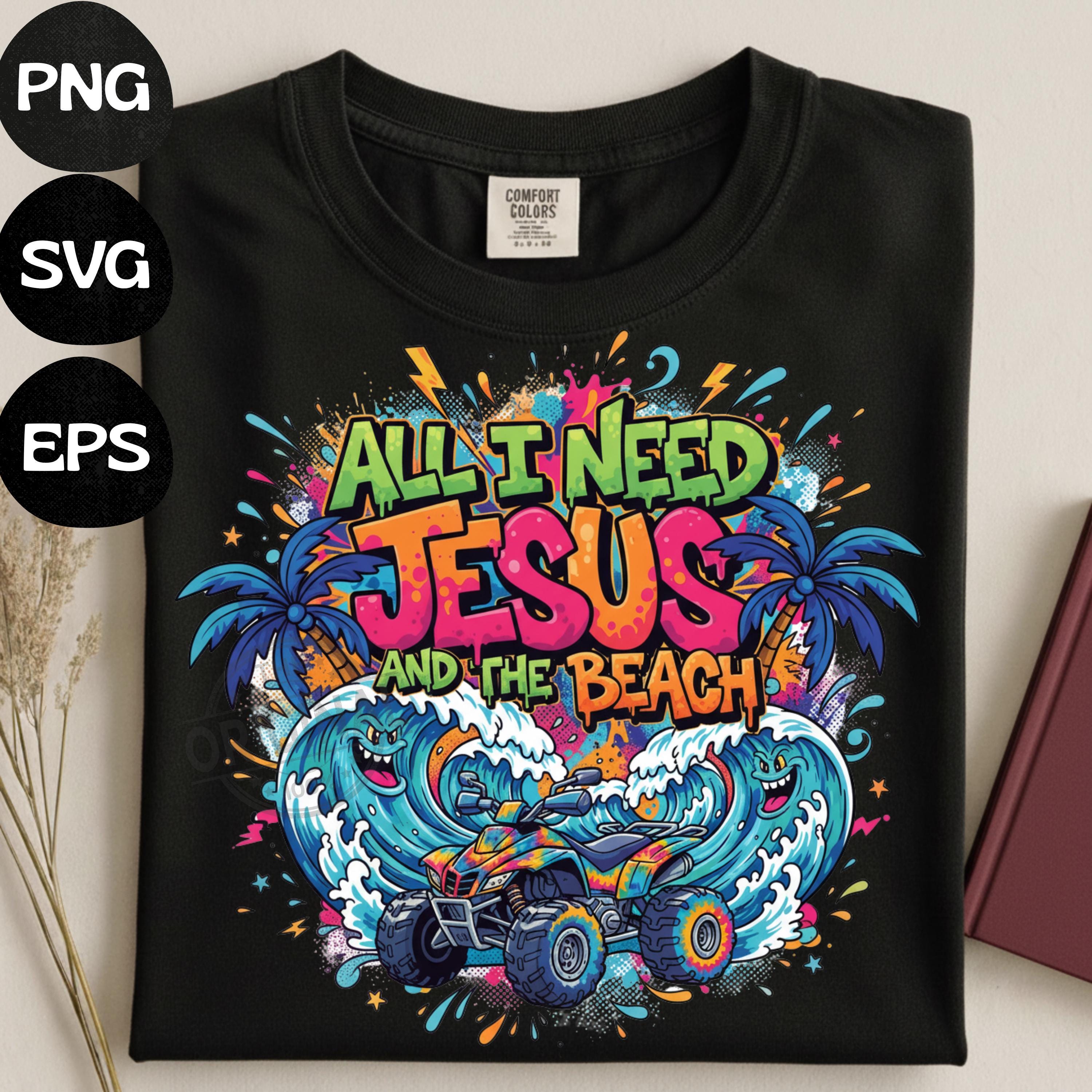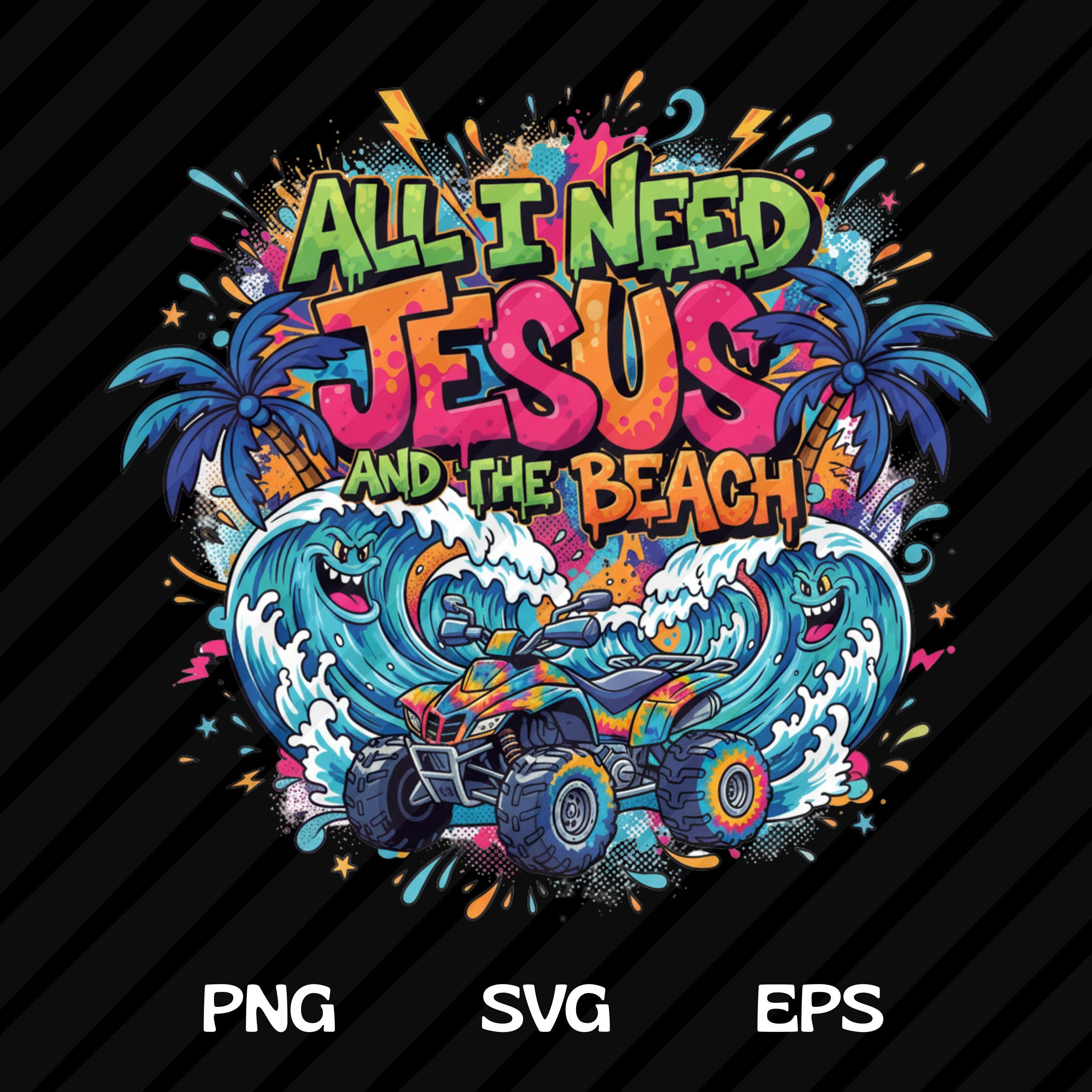 Bring faith and sunshine together with this All I Need Jesus and The Beach digital design. Perfect for crafting Christian summer shirts, beach totes, mugs, wall art, or DIY décor.