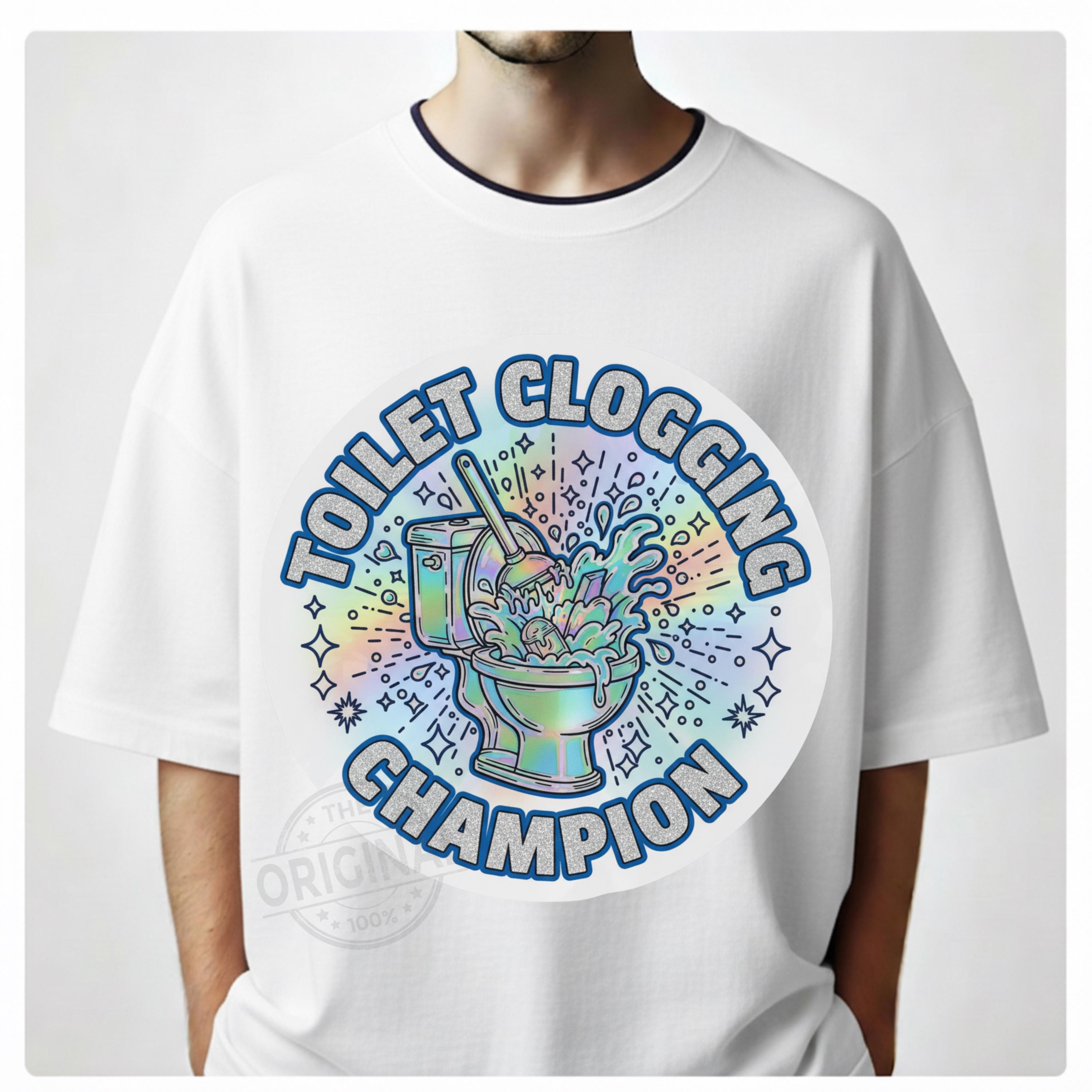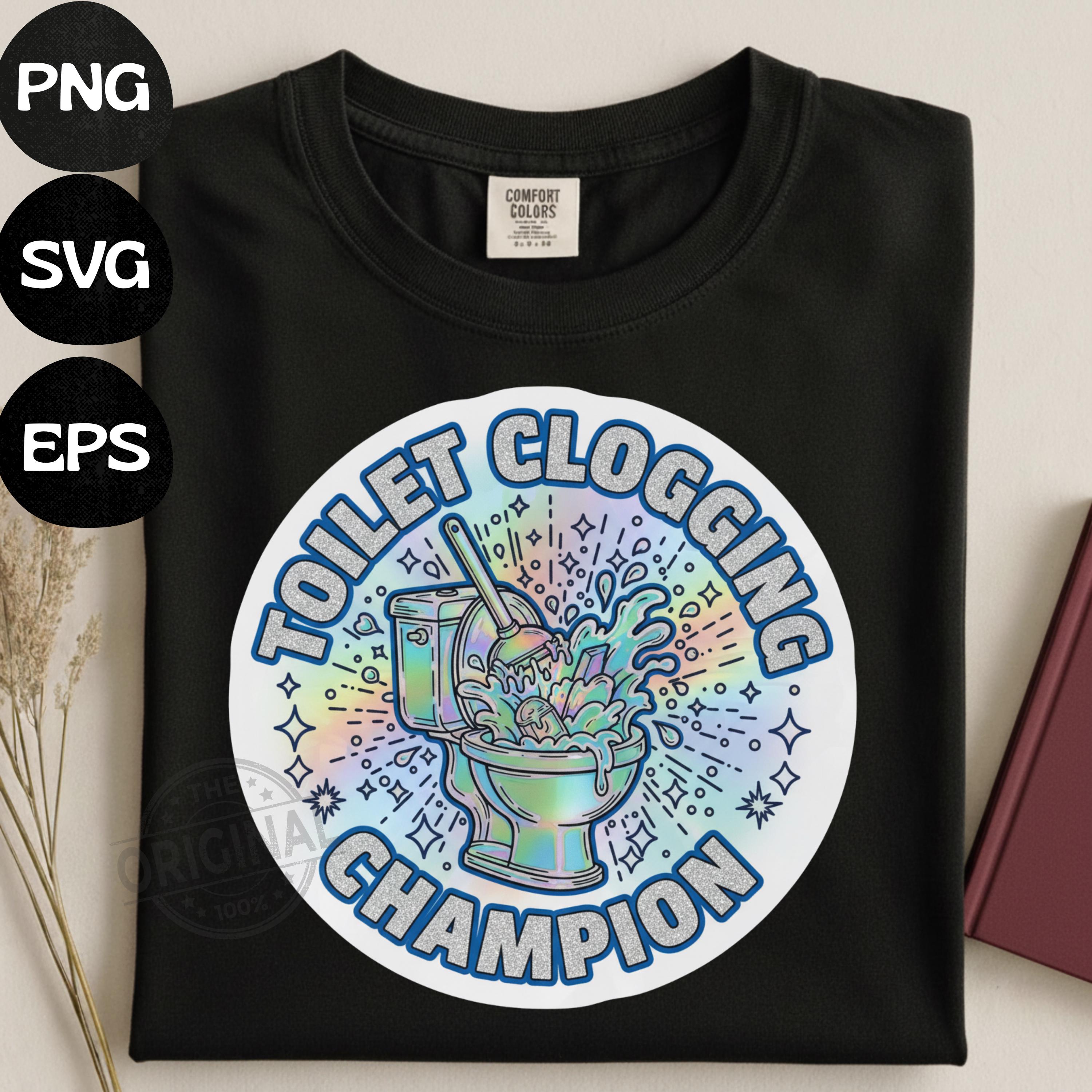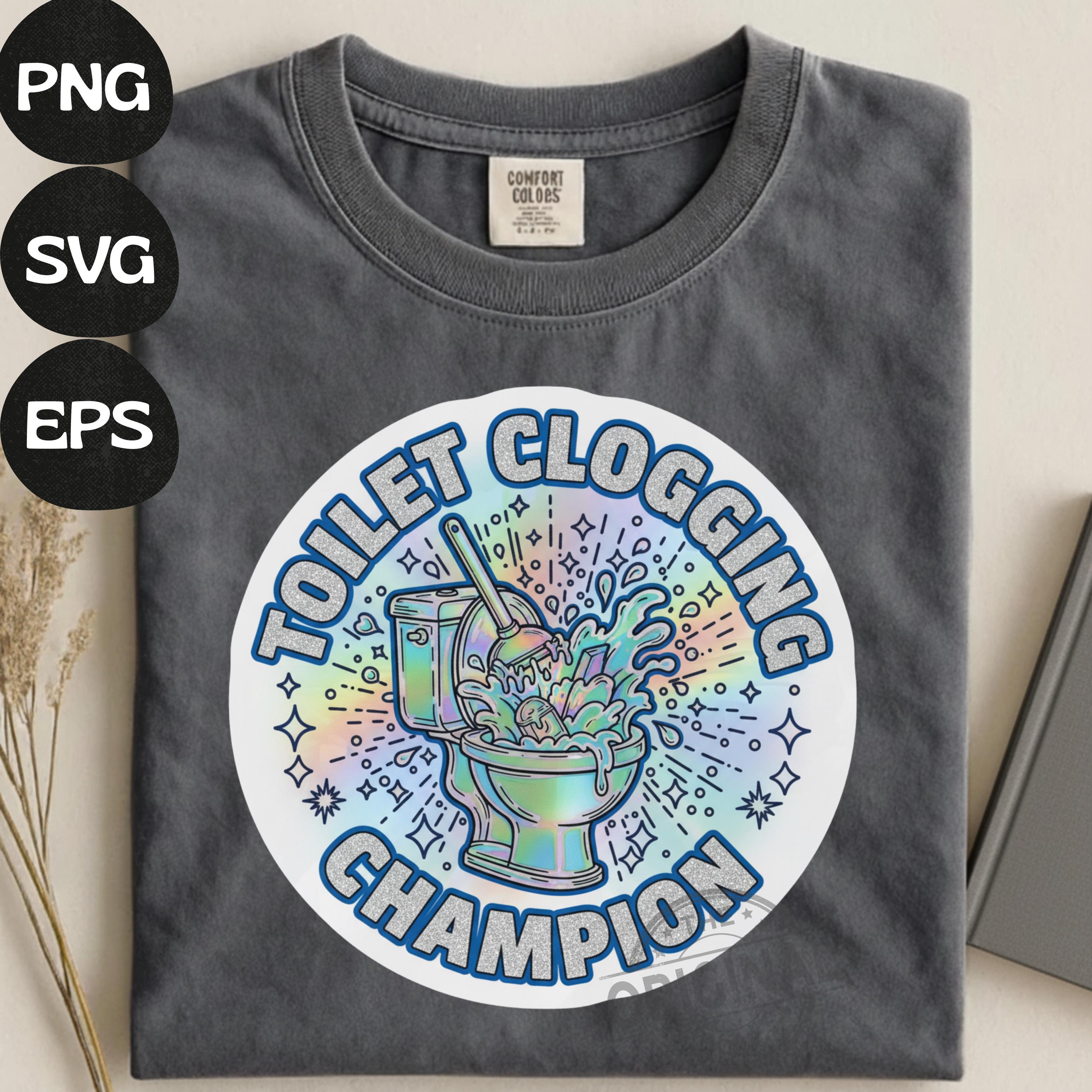 Make a bold statement with our "Toilet Clogging Champion" digital design! Whether it's for a light-hearted gift or your next funny craft project, this design brings humor and personality to your creations Perfect For T-shirts, sweaters, mugs, stickers, cards, tumblers, crafting and more.