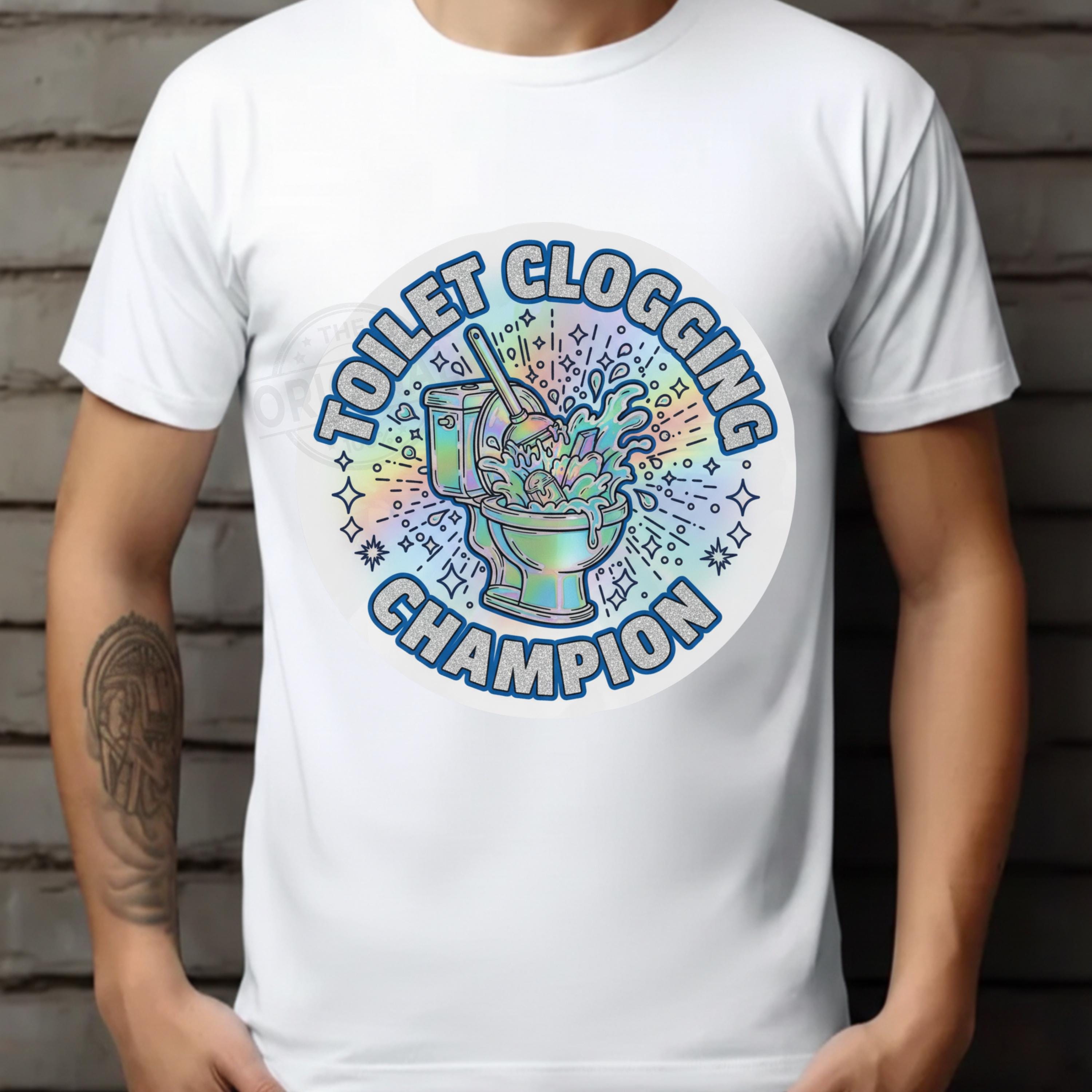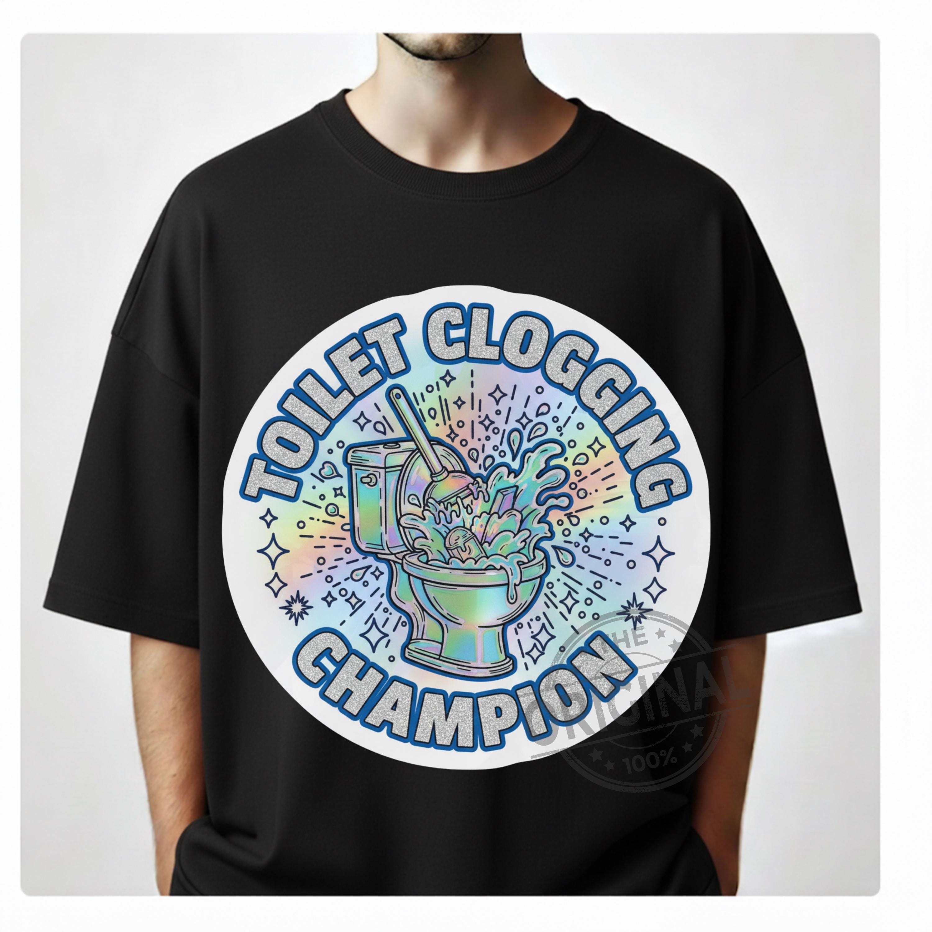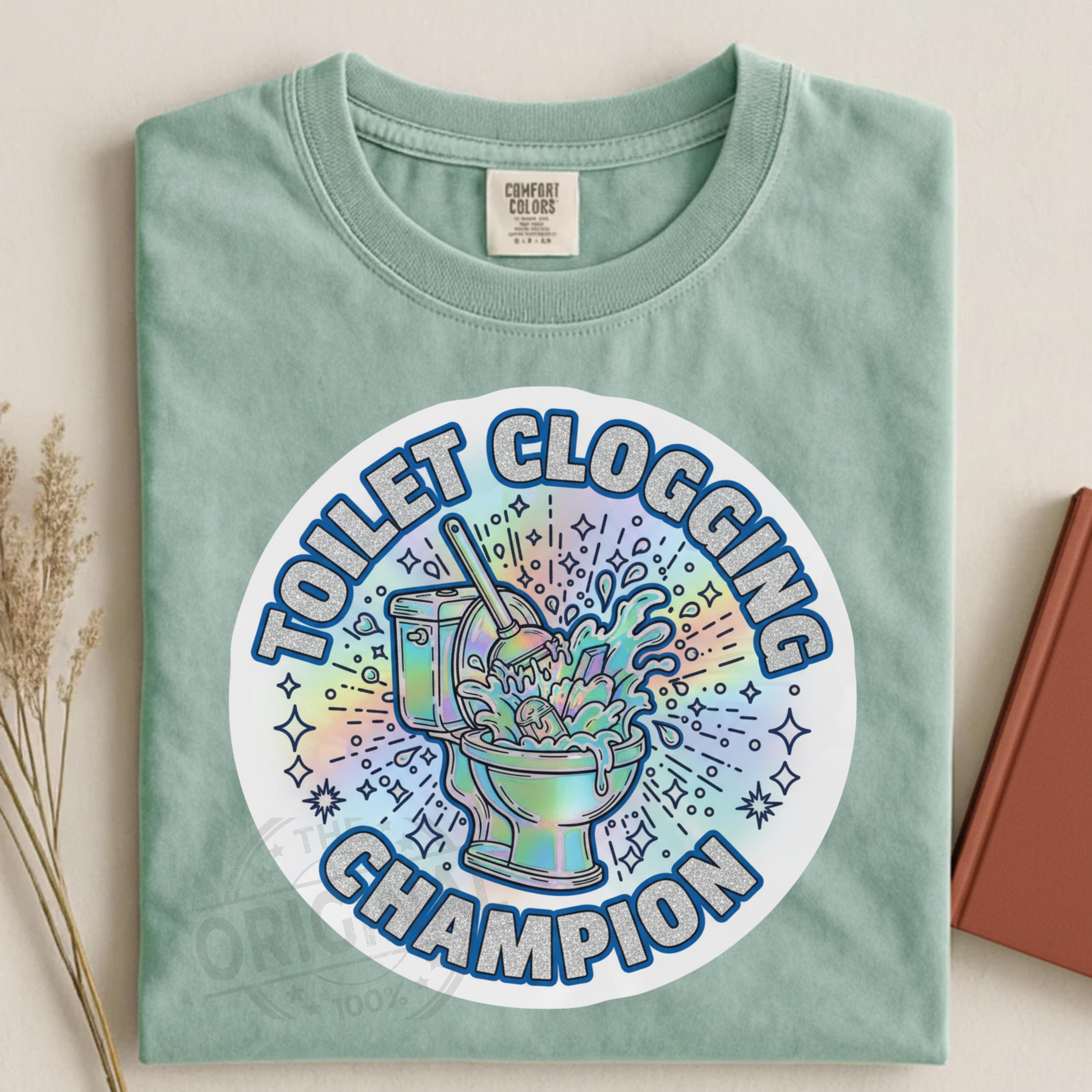 Make a bold statement with our "Toilet Clogging Champion" digital design! Whether it's for a light-hearted gift or your next funny craft project, this design brings humor and personality to your creations Perfect For T-shirts, sweaters, mugs, stickers, cards, tumblers, crafting and more.