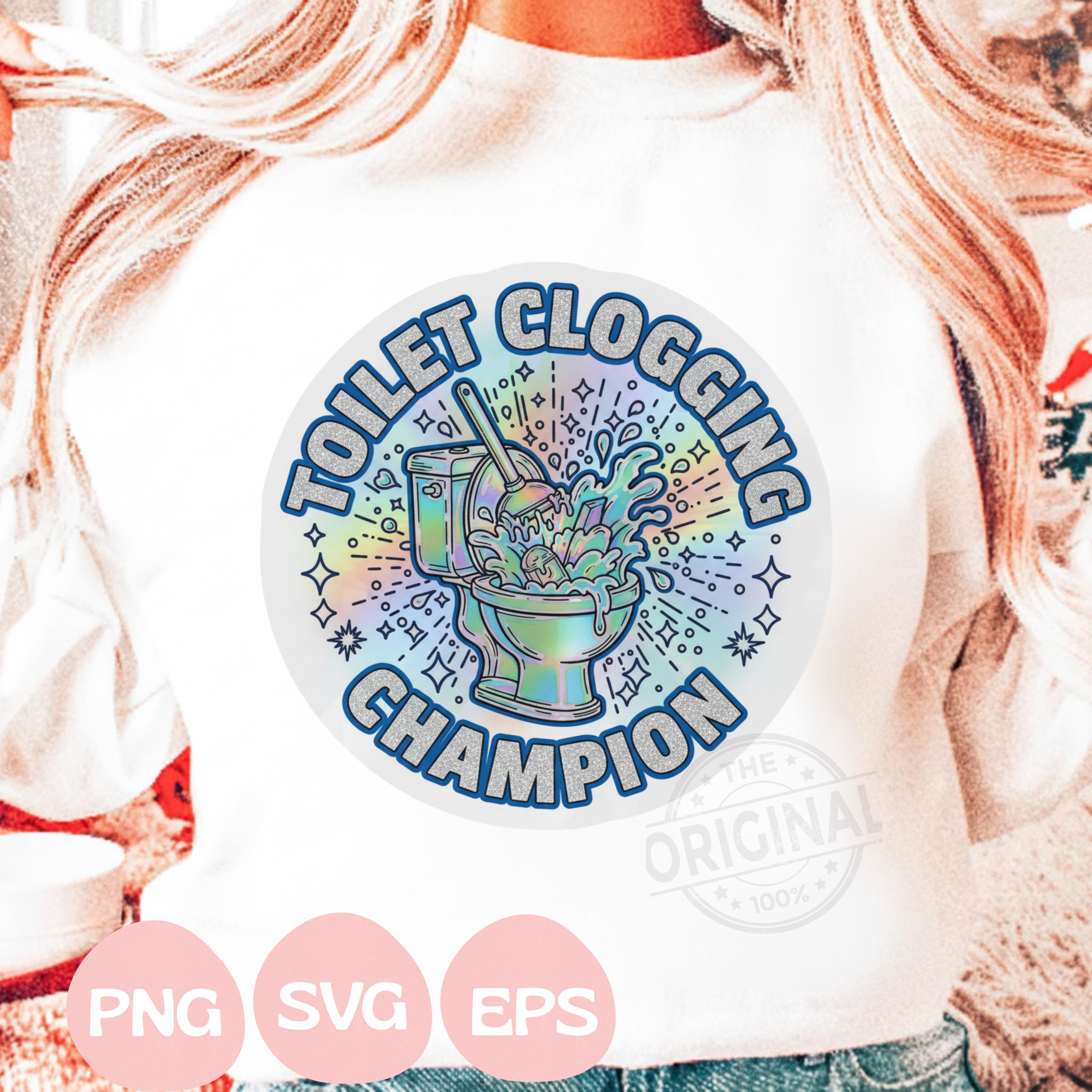Toilet Clogging Champion Funny Bathroom SVG PNG EPS (Digital Download)