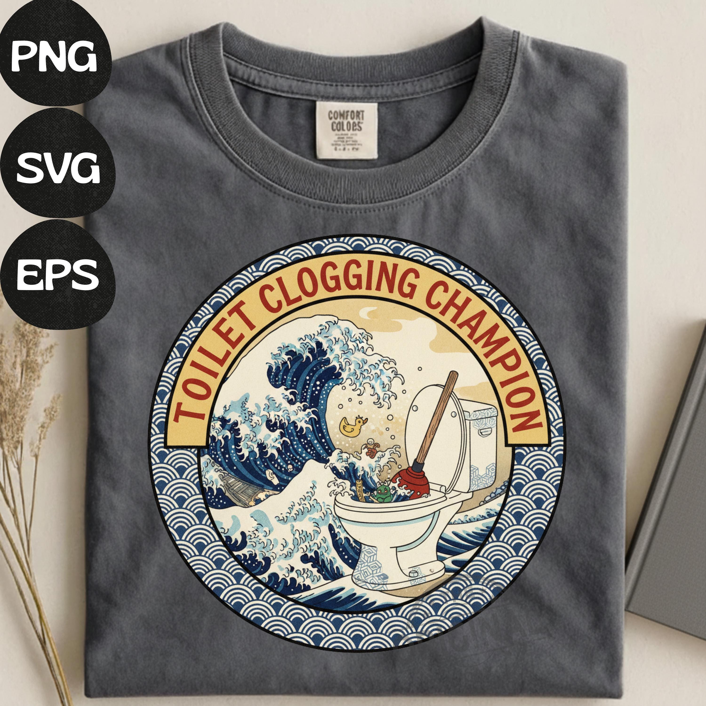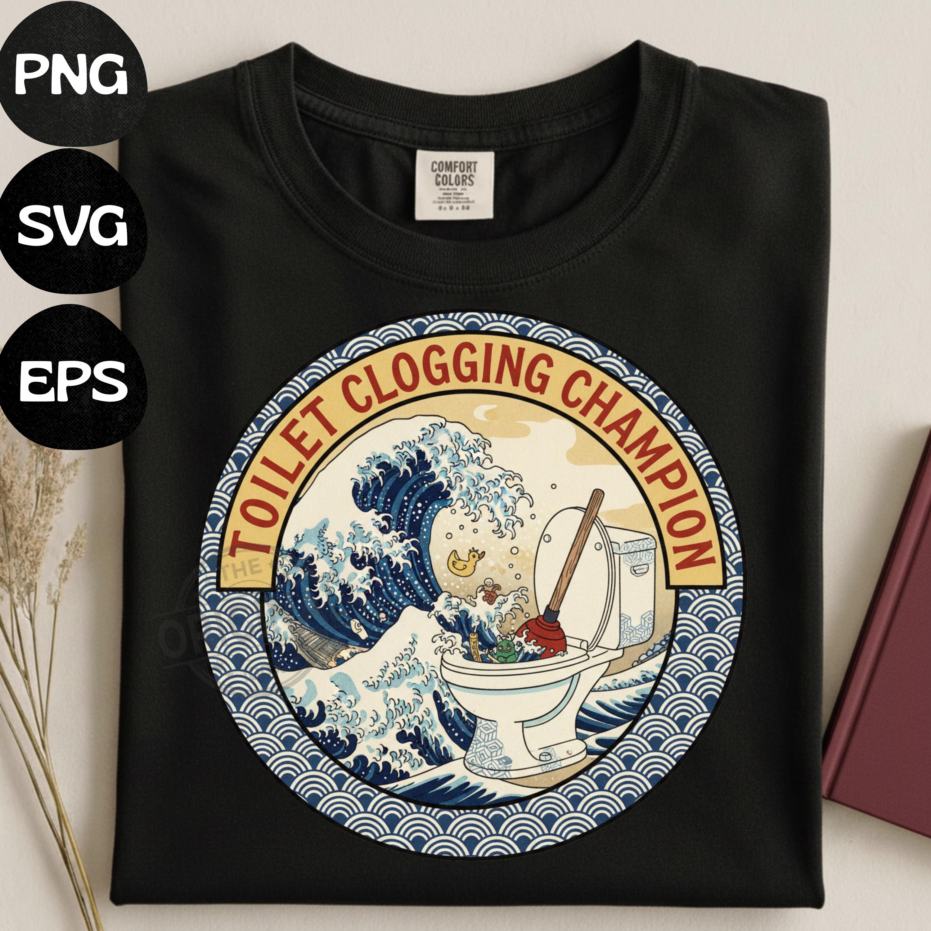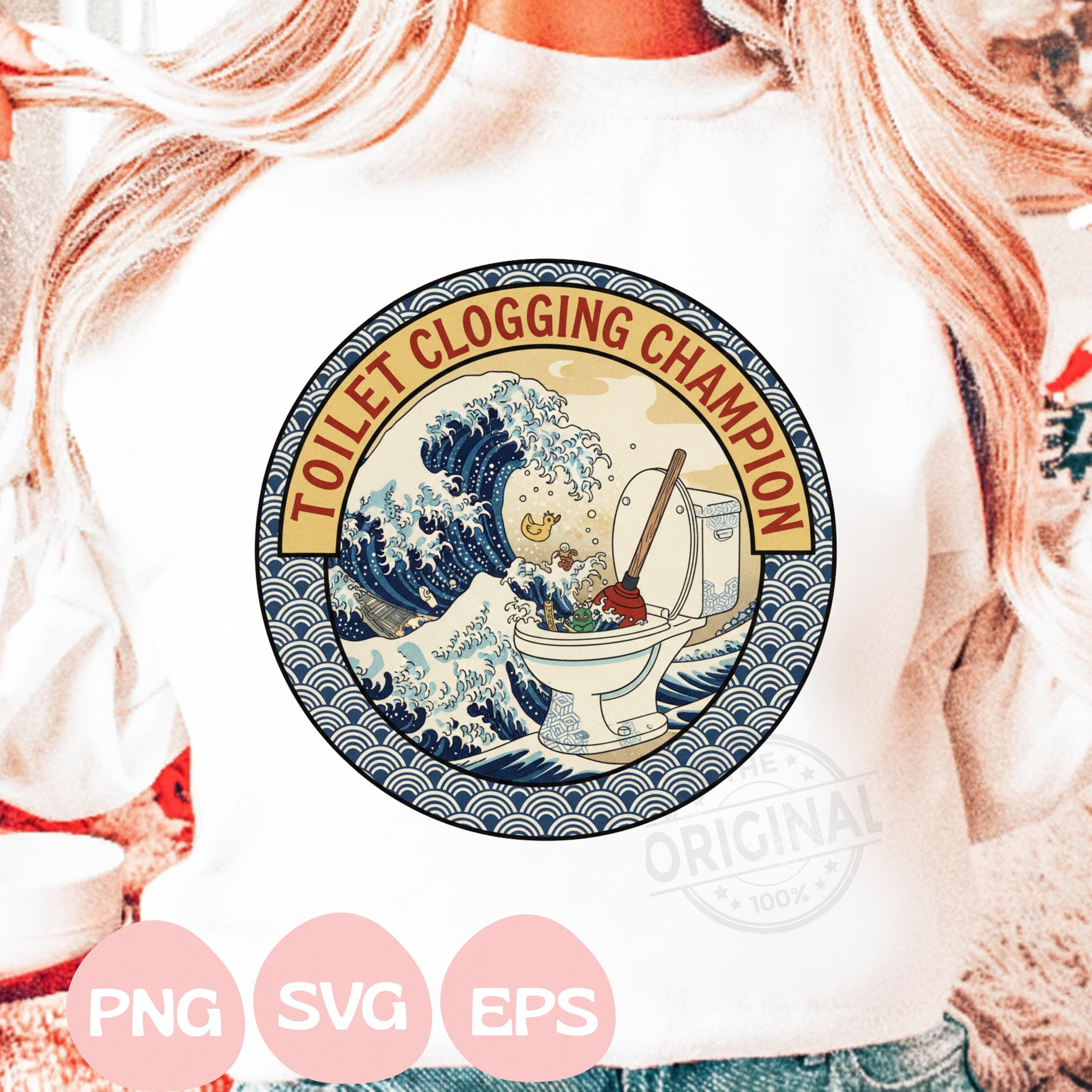 Make a bold statement with our "Toilet Clogging Champion" digital design! Whether it's for a light-hearted gift or your next funny craft project, this design brings humor and personality to your creations Perfect For T-shirts, sweaters, mugs, stickers, cards, tumblers, crafting and more.