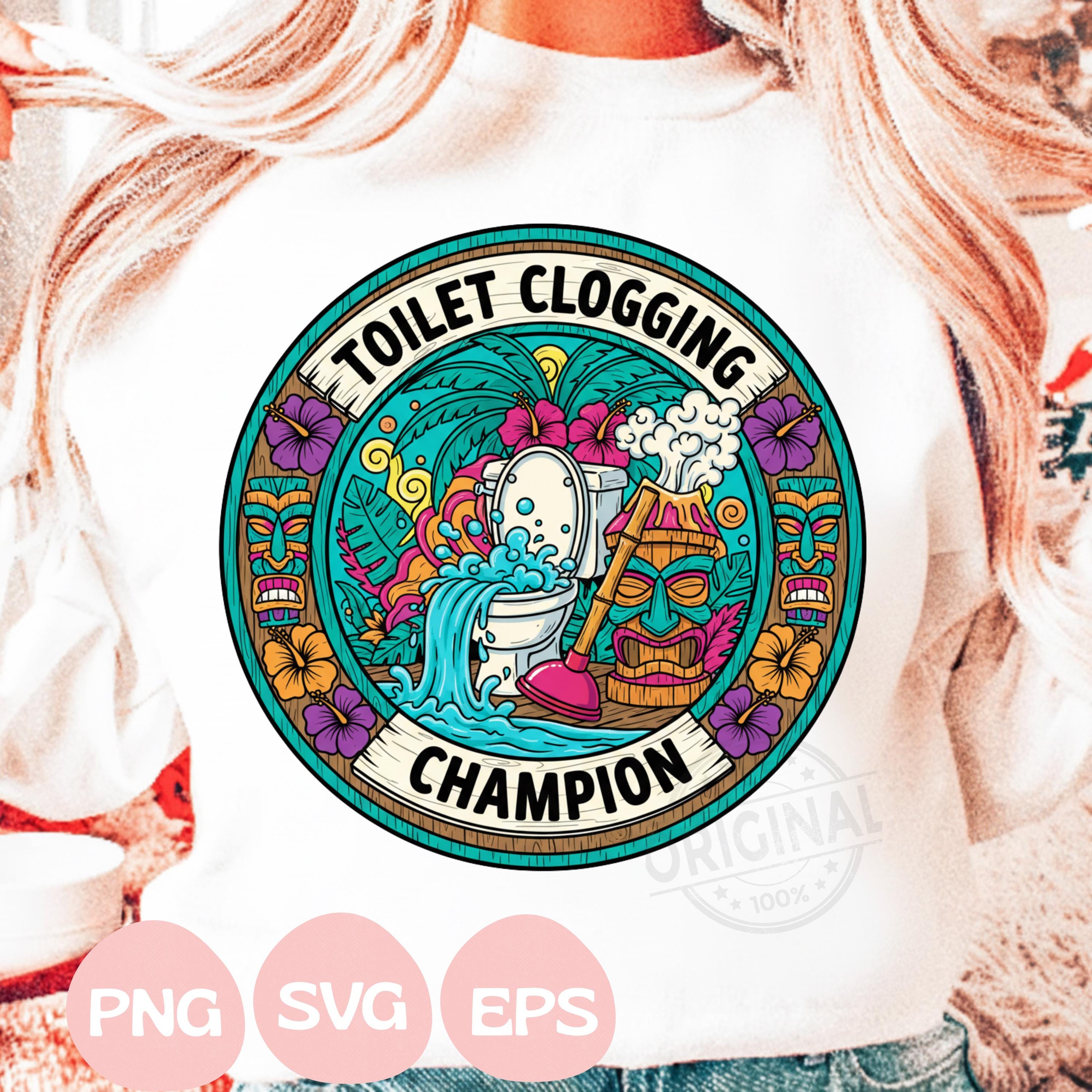 Make a bold statement with our "Toilet Clogging Champion" digital design! Whether it's for a light-hearted gift or your next funny craft project, this design brings humor and personality to your creations Perfect For T-shirts, sweaters, mugs, stickers, cards, tumblers, crafting and more.